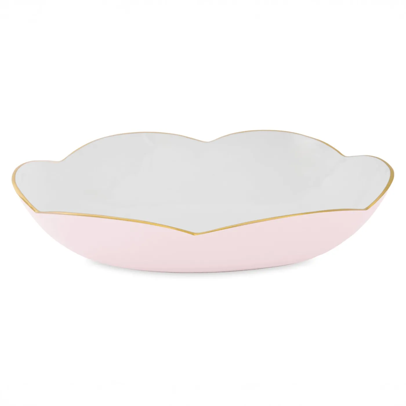 A showstopping centerpiece for salads, fruit, or decorative display. The ENCANTO Amelia Extra Large Bowl in Camellia and White features dramatic fluted styling and a brilliant two-tone enamel finish rimmed in gold.