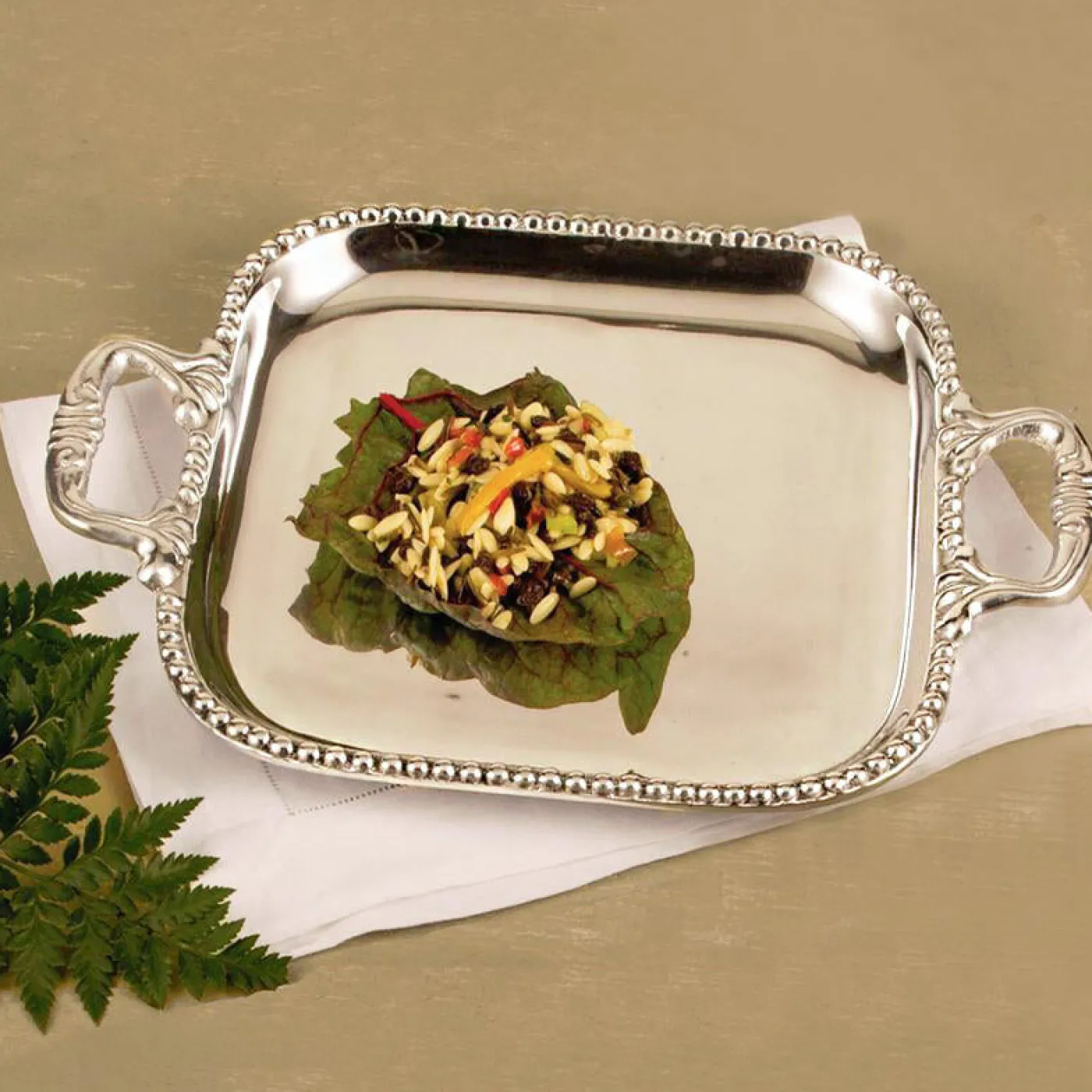 The Beatriz Ball PEARL David medium decorative silver tray offers sophisticated style in a user-friendly manner, perfect for today’s casual lifestyles.
