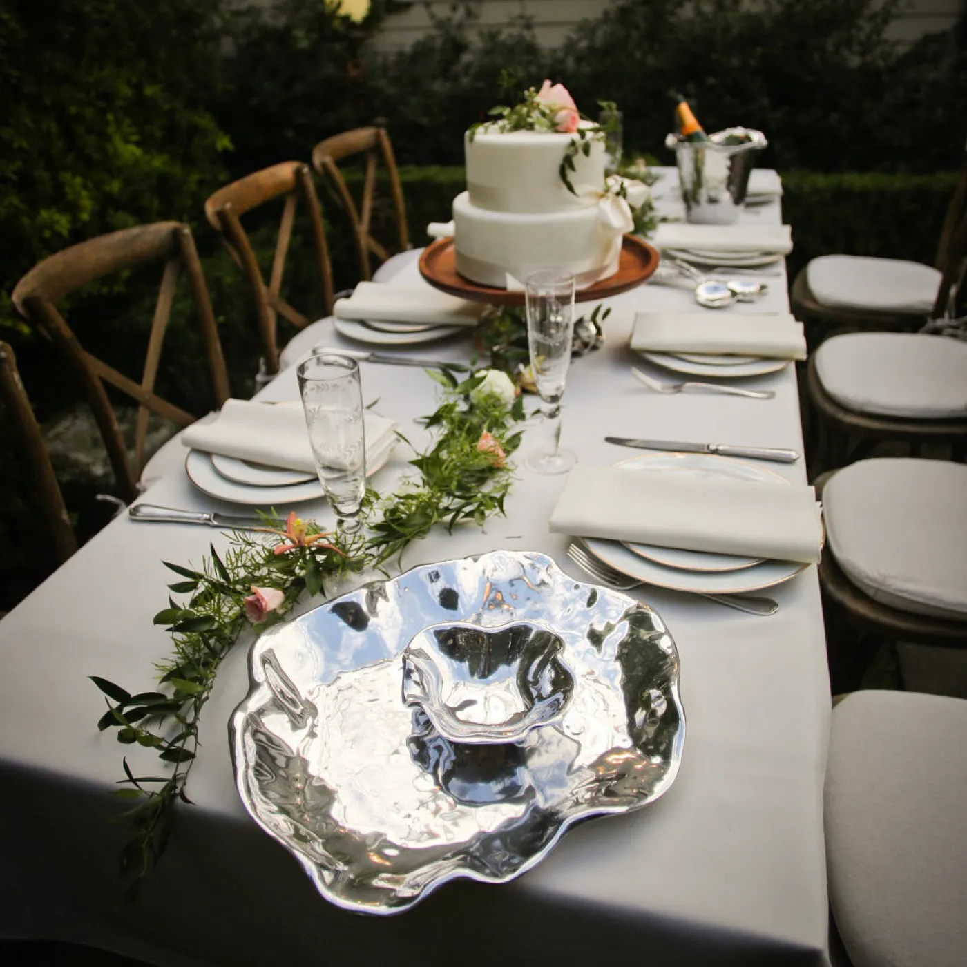 The eye-catching two-parter in gleaming metal offers stylish design, and elegant practicality.