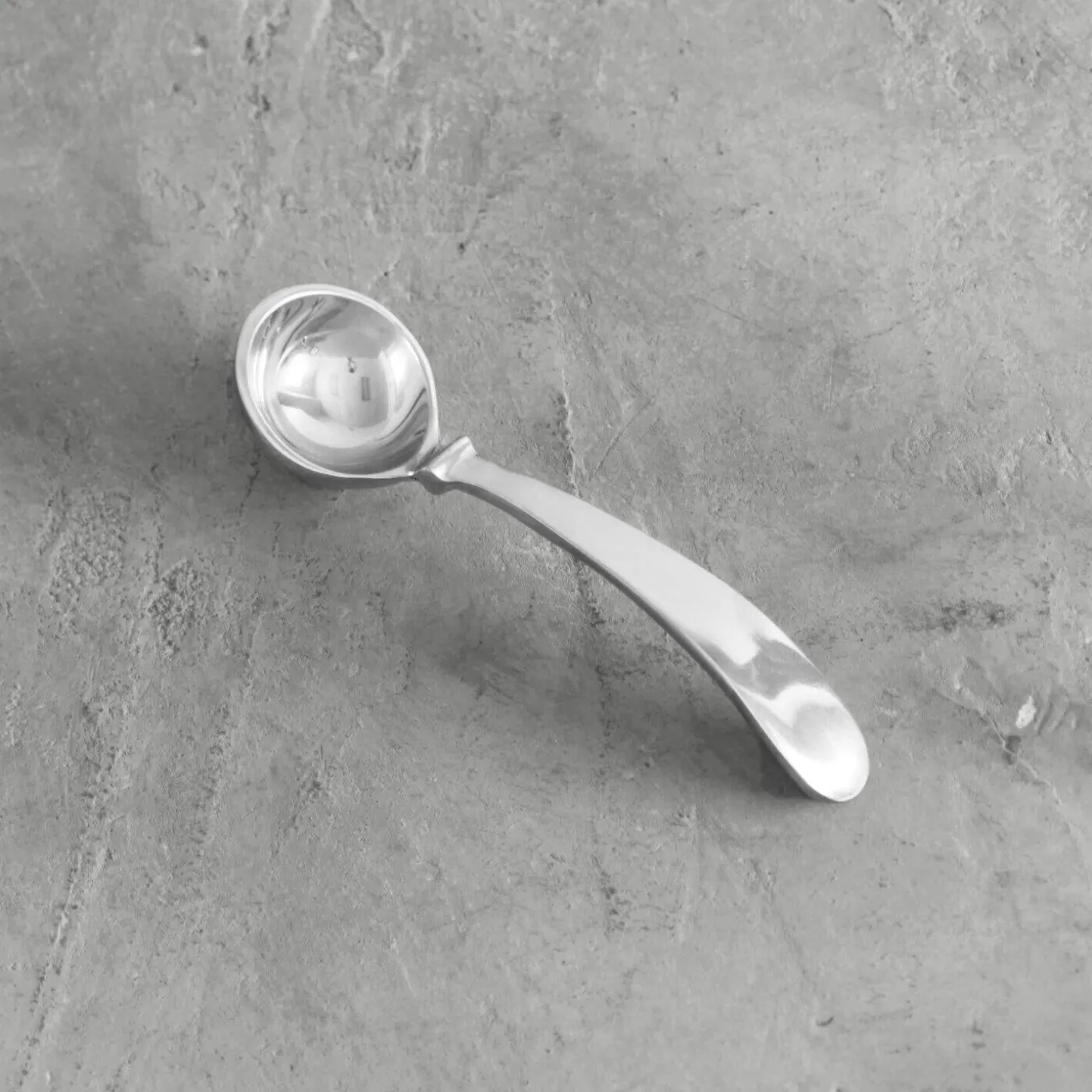 The Beatriz Ball SOHO Plain small decorative silver ladle is perfect for serving sauces, salsas, and salad dressings in style.