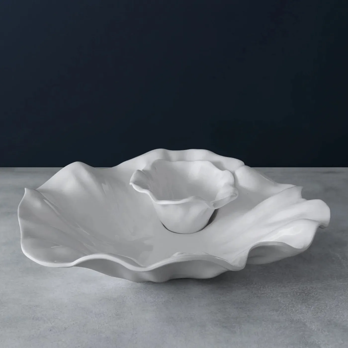 As with the other Bloom pieces, the dynamic design of the two-part VIDA Bloom Chip and Dip (White) in luxury melamine features rippling petal-like movement, creating an eye-catching serving piece that combines beauty, artistry and functionality. Great on its own, or combined with other Bloom shapes and sizes, this handsome chip and dip will be the life of the party.