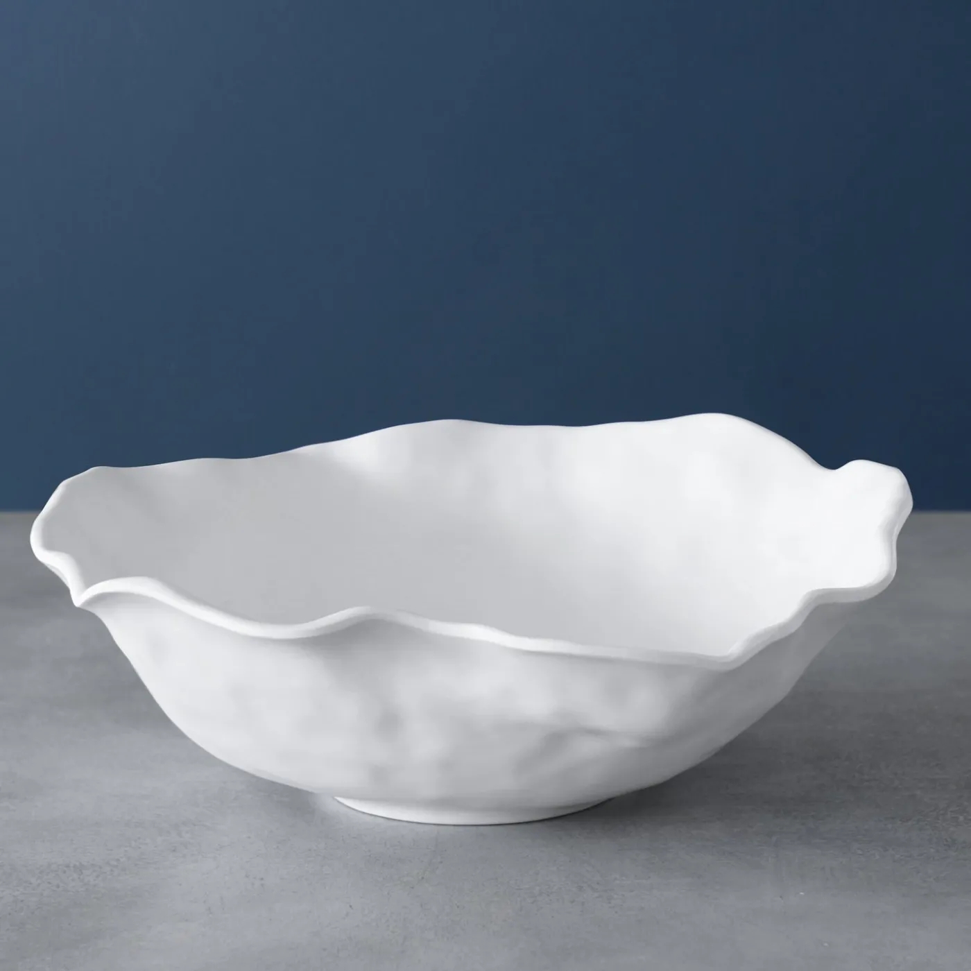 The generously sized VIDA Nube Large Round Bowl (White) has the look and feel of fine ceramics, but the practicality of melamine. A great salad bowl, the multipurpose bowl can be used for serving popcorn and snacks, too. With its matte finish and dramatic shape, this Nube bowl is truly a standout. It makes a super gift for the foodie. Made of luxury melamine for everyday enjoyment, this piece is ideally suited for indoor and outdoor entertainment. Dishwasher safe (top rack), heavy-weight, food safe, BPA and PABA free.