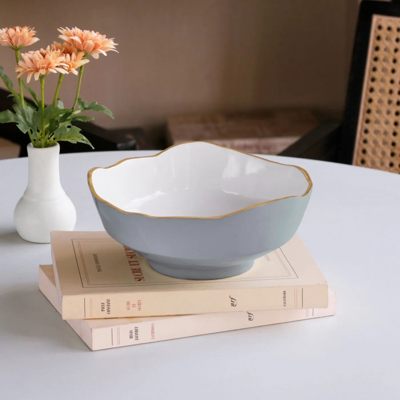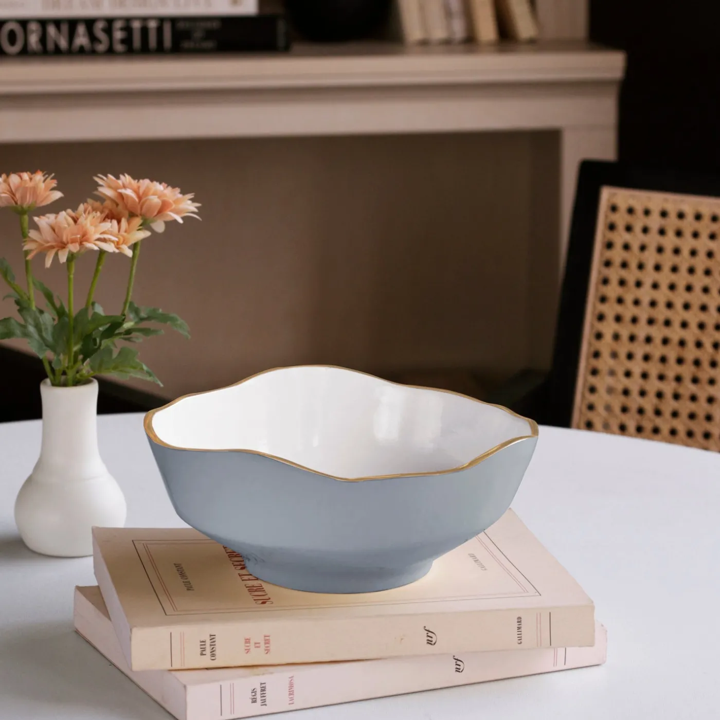 With its two-toned enameled finish and touches of gold, the ENCANTO Dakota Small Bowl (Slate and White) is both calming and versatile. Slate, a timeless neutral with blue undertones, makes this bowl a refined addition to the ENCANTO Collection.