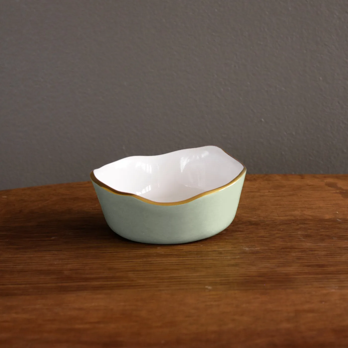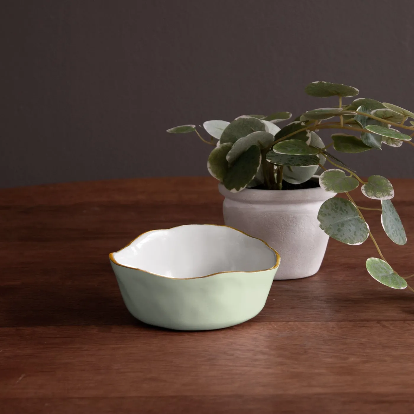 The ENCANTO Soho Wine Coaster (Pistachio and White) is a spirited expression of ENCANTO style. Notable for its compact size, simply elegant shape, and brilliant enameled finish rimmed in gold, the piece is an awesome design that is as handy as it is decorative. Designed to hold a wine bottle, the piece can be used for serving snacks, and is also great as a catch-all on the desk, vanity or bedside table. The ENCANTO pieces are all about classic shapes, re-invented in lively colors. A fabulous gift item for brides, and perfect for anyone who loves to entertain colorfully. Beatriz Ball’s intensely handmade products use eco-friendly and sustainable materials and are crafted by artisans who trace a heritage of metalworking for generations. Made of a top quality, easy-care, aluminum alloy with a food safe enamel finish. Dishwasher safe.