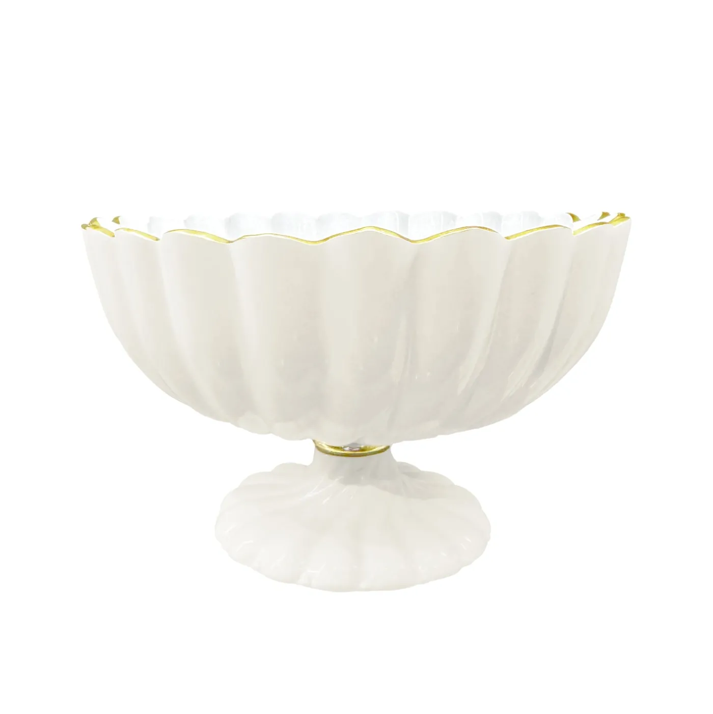 Classic Vienna elegance in cream and white with touches of gold. The ENCANTO Vienna Medium Round Pedestal (Cream and White) highlights graceful fluting and a luminous two-tone enamel finish in Beatriz Ball’s bestselling colorway.