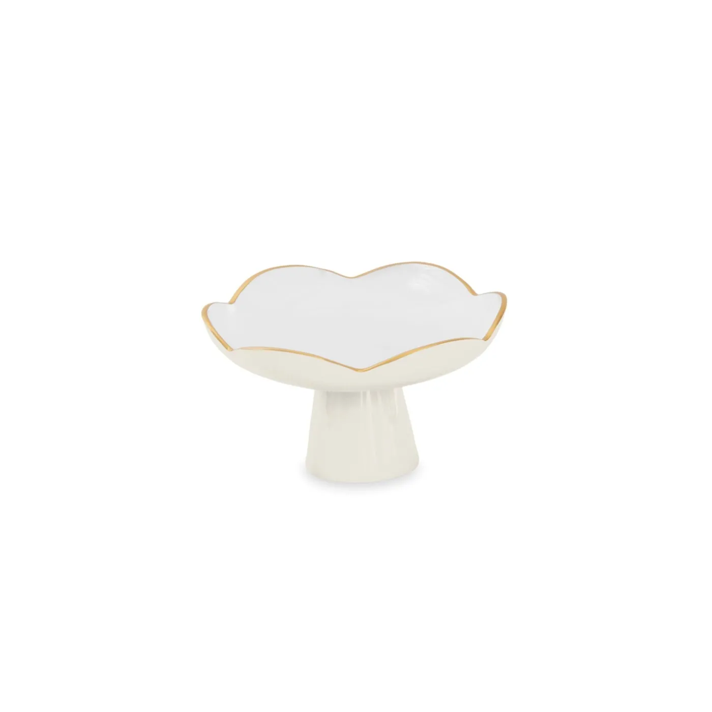 Elevate mini desserts, appetizers, or sweets with the ENCANTO Amelia Small Pedestal in Cream and White. Its fluted silhouette, luminous cream-and-white enamel, and gold-tone rim make it a versatile centerpiece for everyday entertaining.