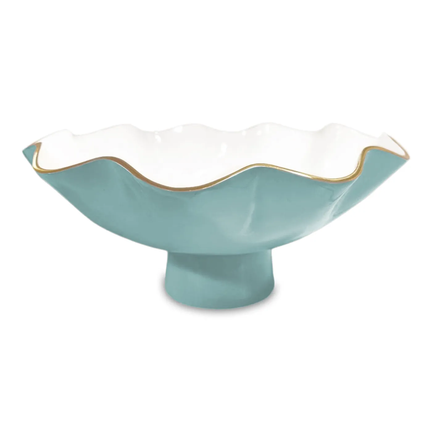 Next level design. Notable for its gently curving sides, elegant rise, and brilliant two-tone finish rimmed in gold, the ENCANTO Carola Large Pedestal (Turquoise and White) is a fabulous design that is as practical as it is decorative. Ideal for fruit, salads, snacks and sides, combine with other ENCANTO Carola pieces for an elevated serving set. The ENCANTO Collection pieces are all about classic shapes, re-invented in lively colors. Fashionably tailored in delightful colors, ENCANTO items are fabulous gift items for brides, and perfect for anyone who loves to entertain and decorate. On trend, their beautiful designs with curving forms add grace and sophistication to any setting. Makes an awesome centerpiece! Beatriz Ball’s intensely handmade products use eco-friendly and sustainable materials and are crafted by artisans who trace a heritage of metalworking for generations. Made of a top quality, easy-care, aluminum alloy with a food safe enamel finish. Dishwasher safe.
