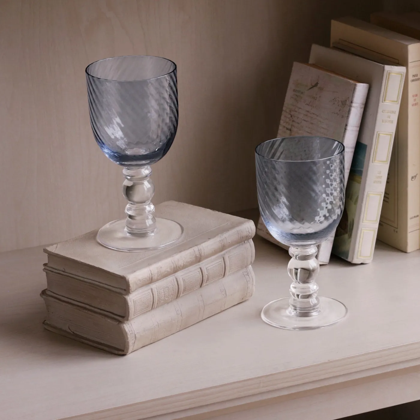 A sparkling glass in a beautiful blue hue! The elegant French Swirl Wine glasses in a et of 4 (Blue) brings timeless sophistication to the table. Featuring a swirl optic on the bowl and decorative curves on the stem, the design creates a dazzling interplay of light and texture.