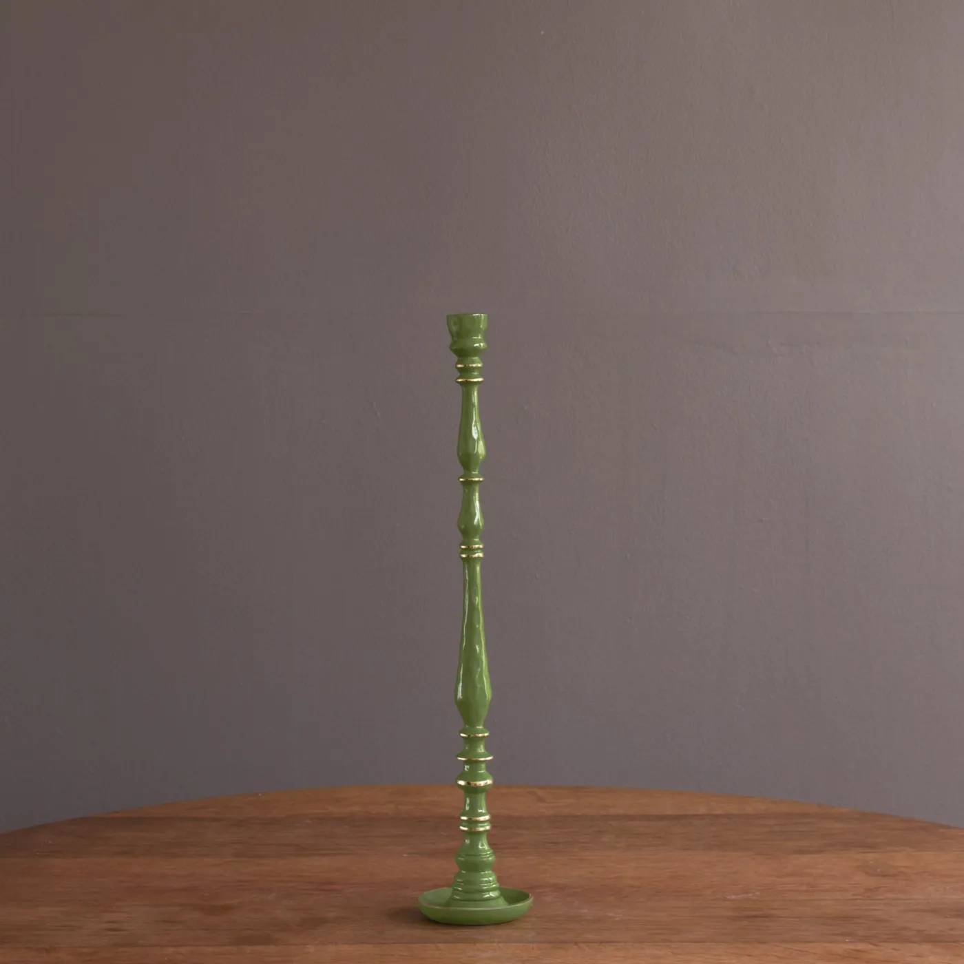Tall and impressive, the vibrantly colored ENCANTO Crosby Candlestick Holders add a luminous touch of glamour to the home. An updated classic, the ENCANTO Crosby Large Candlestick Holder (Leaf Green) is notable for its thoughtful design, expert craftsmanship and stately proportions. Guaranteed to add a luxe look to any space, the candlestick holders can be topped with tapers in fun colors, and mixed and matched with other designs for a lively table. A great addition to the home, present them singly, in pairs, or in graduated sizes. Beatriz Ball’s intensely handmade products use eco-friendly and sustainable materials and are crafted by artisans who trace a heritage of metalworking for generations. Made of a top quality, easy-care, aluminum alloy with an enamel finish. This item is for decorative purposes only and is not food safe.
