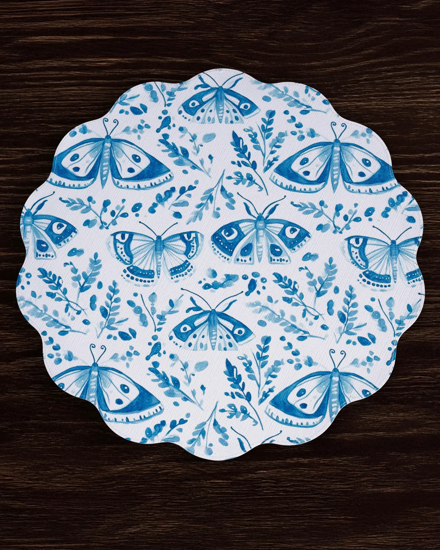Shades of blue and green bring timeless charm to your table. Sold in sets of four, the VIDA Ginger Jar & Butterflies Reversible Round Placemats in blue & green have a supple leather-like feel and linen texture. One side features classic ginger jars surrounded by colorful blooms; the reverse displays a coordinating pattern of butterflies and botanicals.