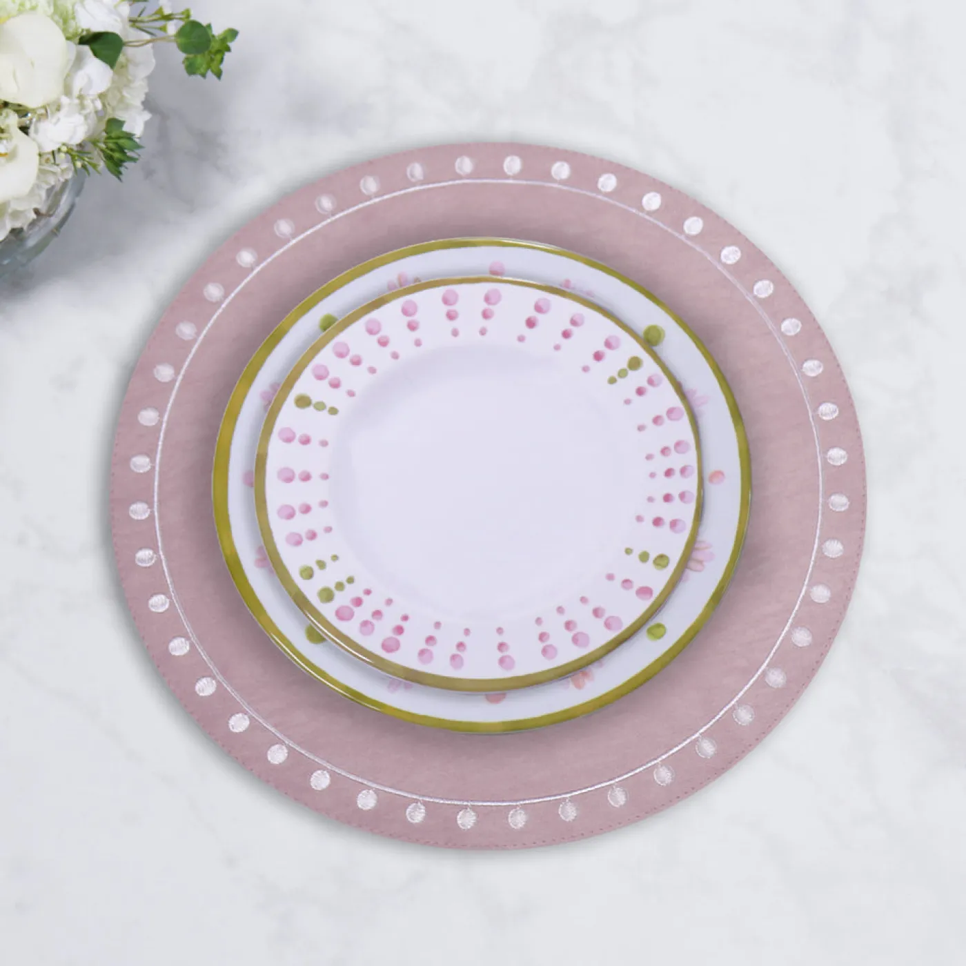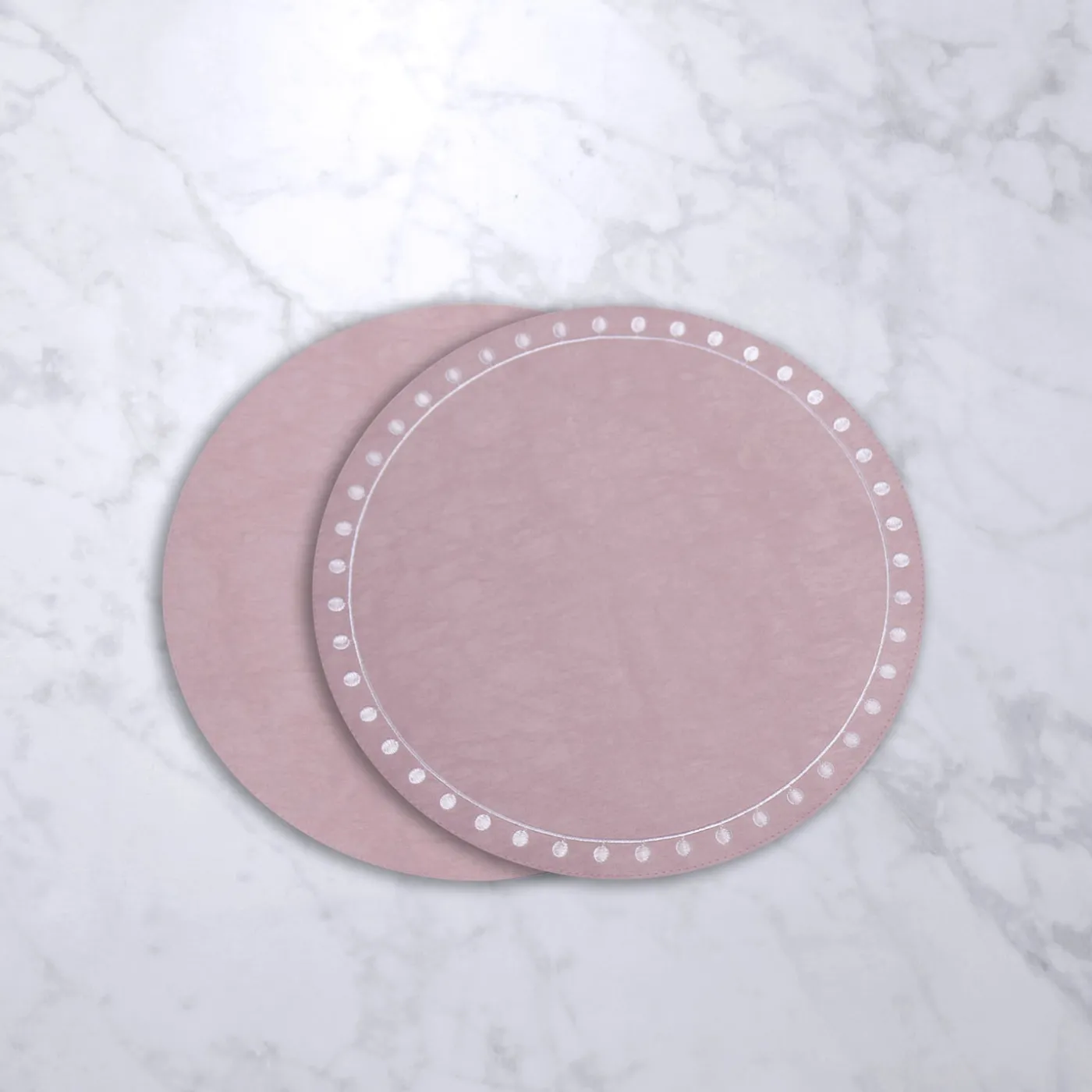 To the point! The VIDA Round Embroidered Dots 15.5″ Round Placemats Set of 4 (Pink and White) will give any table an instant makeover with joyful color and lively pattern of dots.
