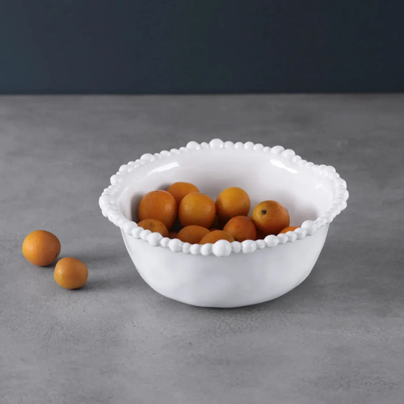 Wake up your dining routine with these fabulous cereal bowls. The VIDA Alegria Cereal Bowl Set of 4 (White) is an essential item from Beatriz Ball’s Alegria Collection of luxury melamine. With a charming pearl rim and a brilliant surface, the bowl may be paired with other white dining pieces–an 11″ dinner plate and a 9″ salad plate–for a coordinated serving set. A table setting with a carefree and modern, Beatriz Ball twist! Perfect soup bowl, too. It looks great when sharing a table with items from Beatriz Ball’s signature metal line. The bowl has the luster, heft and look of a ceramic piece. Made of luxury melamine for everyday enjoyment, this piece is ideally suited for indoor and outdoor entertainment. (6. 75″ x 2. 5″) Dishwasher safe (top rack), heavy-weight, food safe, BPA and PABA free.