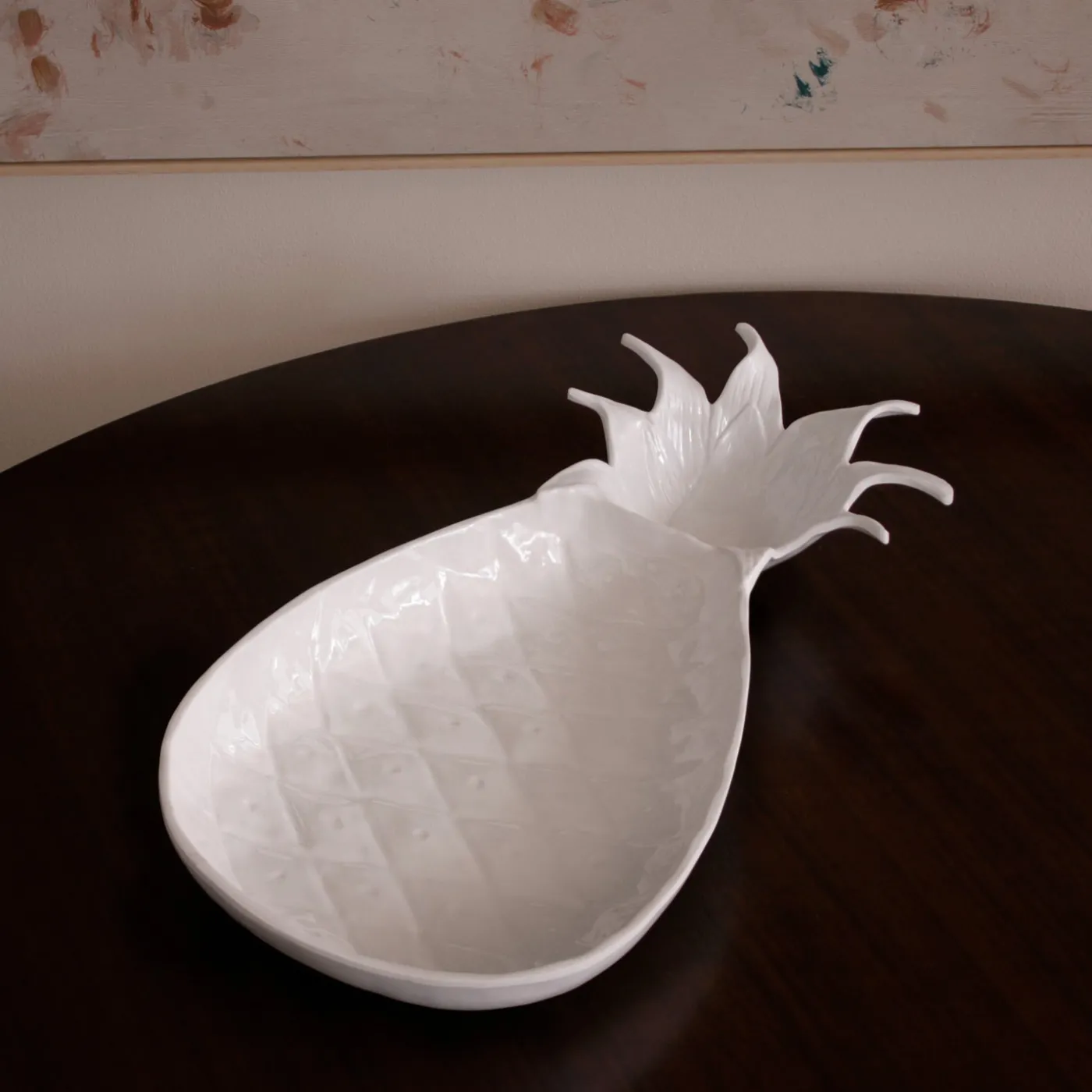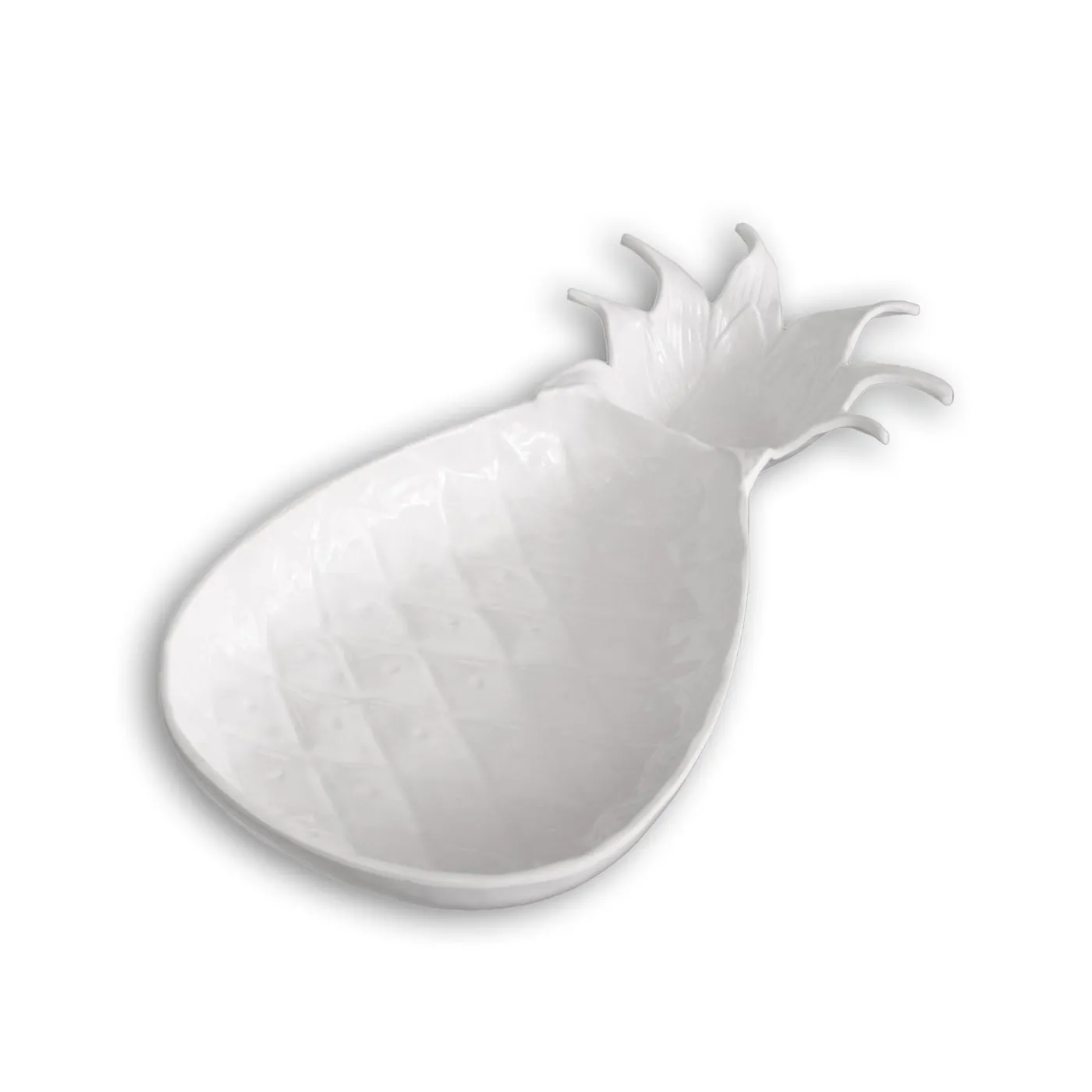 Welcome! This stunning piece has the substance, weight, and appearance of a ceramic item, but is made of luxury melamine for everyday enjoyment. A marriage of style and substance in a material made for today’s busy lifestyles, Beatriz Ball’s sculptural approach to melamine has truly revolutionized the category. The pineapple–the symbol of hospitality–makes a welcome appearance as two-chambered design by Beatriz Ball. With its sculptural form and richly detailed surface, the VIDA Lettuce Pineapple Chip & Dip (White) is both an accurate representation of the popular tropical fruit, and a practical serving piece. With its built-in dip bowl, this versatile item is ideal for serving fresh fruit, veggies, and crackers with your favorite dips and spreads. Makes a unique and welcome gift. The pieces are ideally suited for indoor and outdoor entertainment. Dishwasher safe, heavy weight, food safe, BPA and PABA free.