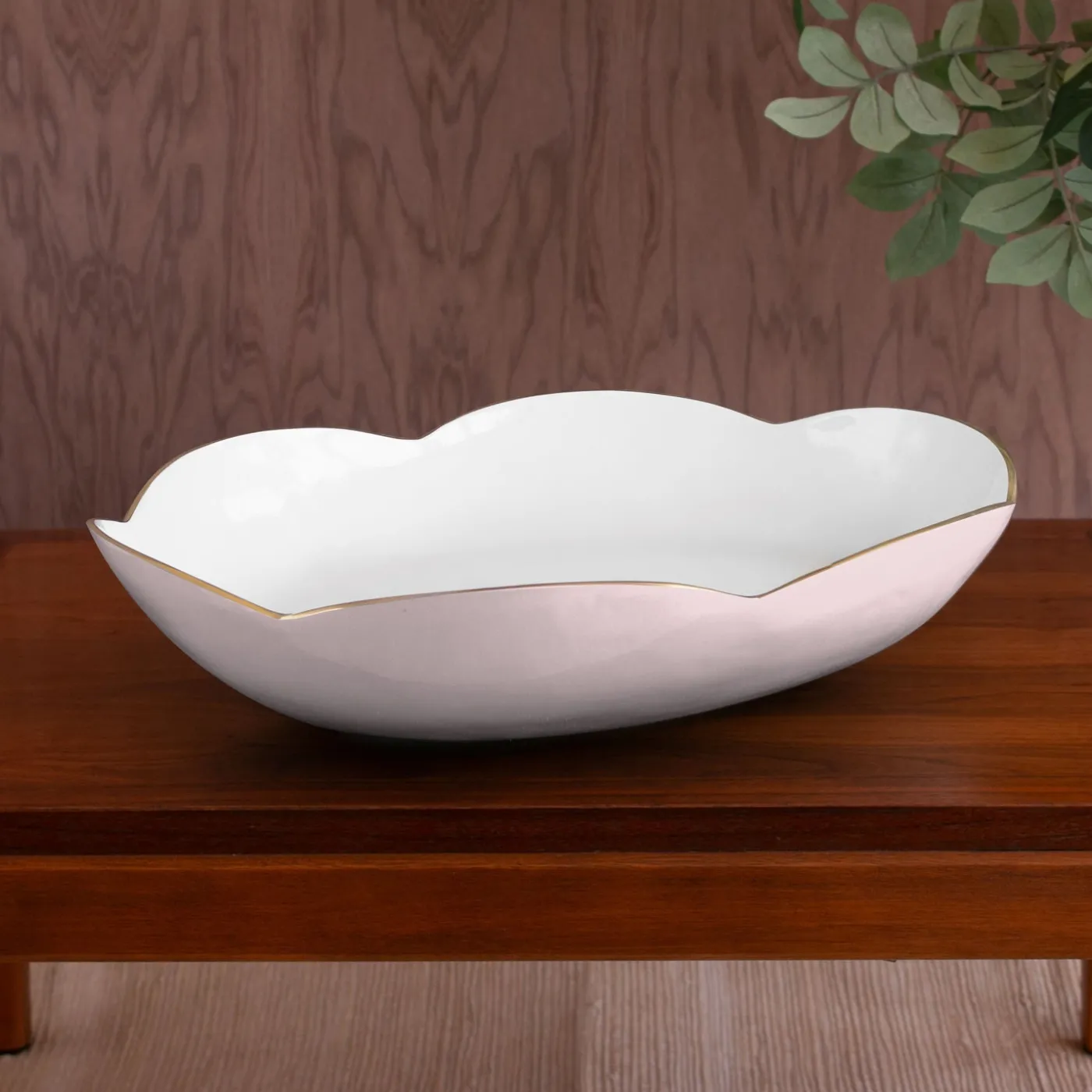 A showstopping centerpiece for salads, fruit, or decorative display. The ENCANTO Amelia Extra Large Bowl in Camellia and White features dramatic fluted styling and a brilliant two-tone enamel finish rimmed in gold.
