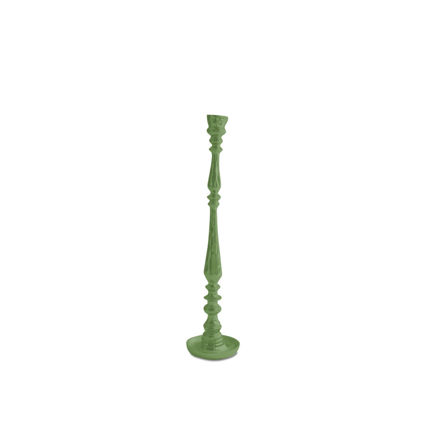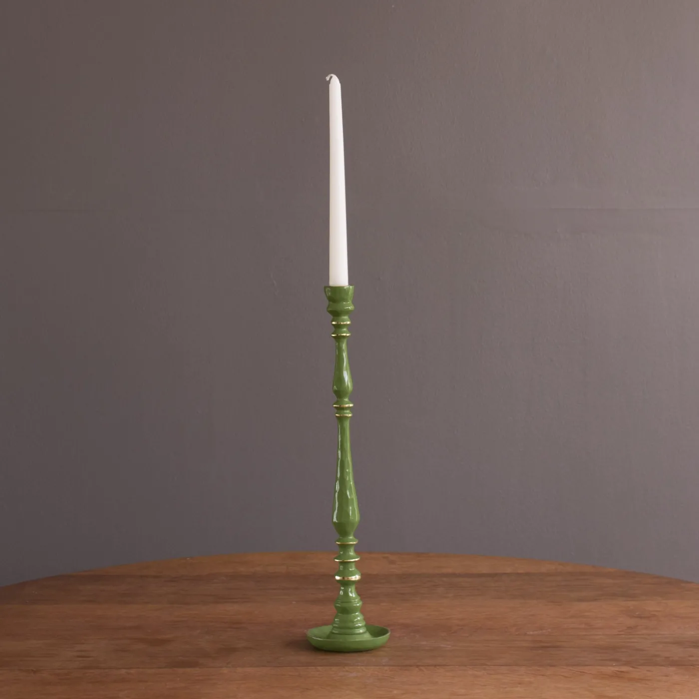 Tall and impressive, the vibrantly colored ENCANTO Crosby Candlestick Holders add a luminous touch of glamour to the home. An updated classic, the ENCANTO Crosby Medium Candlestick Holder (Leaf Green) is notable for its thoughtful design, expert craftsmanship and stately proportions. Guaranteed to add a luxe look to any space, the candlestick holders can be topped with tapers in fun colors, and mixed and matched with other designs for a lively table. A great addition to the home, present them singly, in pairs, or in graduated sizes. Beatriz Ball’s intensely handmade products use eco-friendly and sustainable materials and are crafted by artisans who trace a heritage of metalworking for generations. Made of a top quality, easy-care, aluminum alloy with an enamel finish. This item is for decorative purposes only and is not food safe.