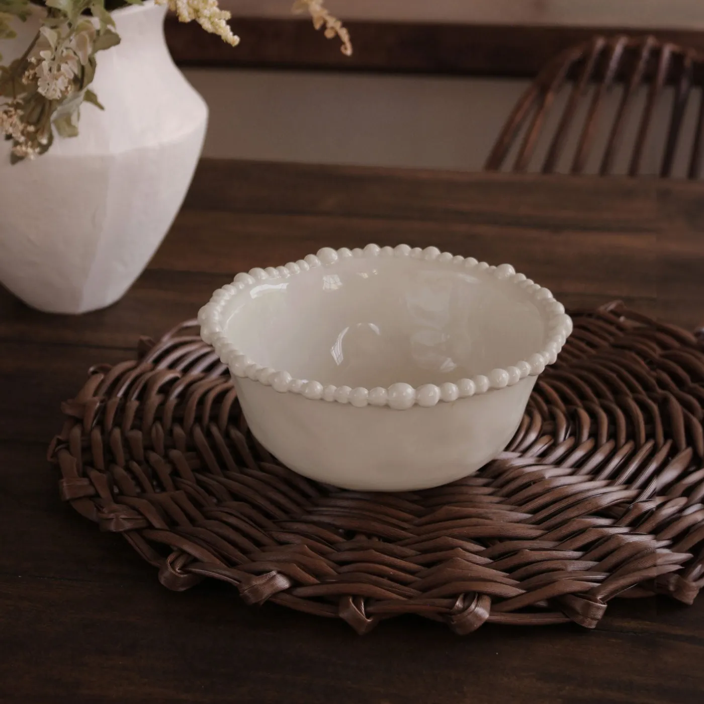 New color alert!In signature Beatriz Ball style, the VIDA Alegria Cereal Bowl Set of 4 (Sand) is an essential item from the Alegria Collection of luxury melamine presented in a sophisticated new color. With a charming pearl rim and a brilliant sand-colored surface, the generous round cereal bowl may be paired with other Sand dining pieces–an 11″ salad plate and a 9″ salad plate–for a coordinated serving set. Create a table setting with a carefree and modern Beatriz Ball twist! It looks great when sharing a table with items from Beatriz Ball’s signature metal line, too. The bowl has the luster, heft and look of a ceramic piece. Great for salads or soups, too.Made of luxury melamine for everyday enjoyment, this piece is ideally suited for indoor and outdoor entertainment. Dishwasher safe (top rack), heavy weight, food safe, BPA and PABA free.