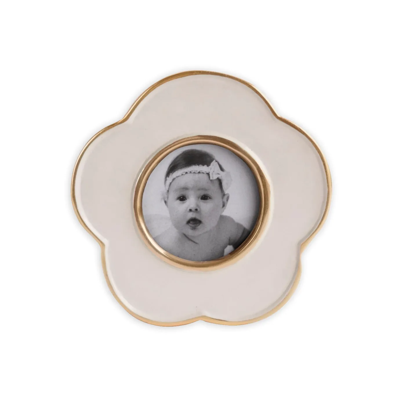 A floral-inspired frame designed to surround treasured memories. Of heirloom quality, the ENCANTO Amelia Giftables Frame 2″ (Cream) enhances a favorite photo, and is a playful addition to any mantle, desk, or bedside table.