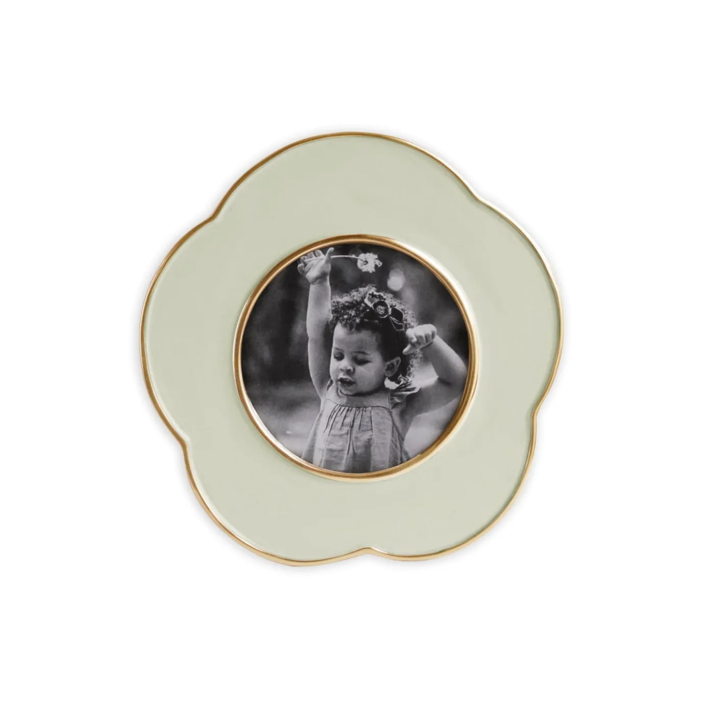 A floral-inspired frame designed to surround treasured memories. Of heirloom quality, the ENCANTO Amelia Frame 4” (Pistachio) enhances a favorite photo, and is a playful addition to any mantle, desk, or bedside table.