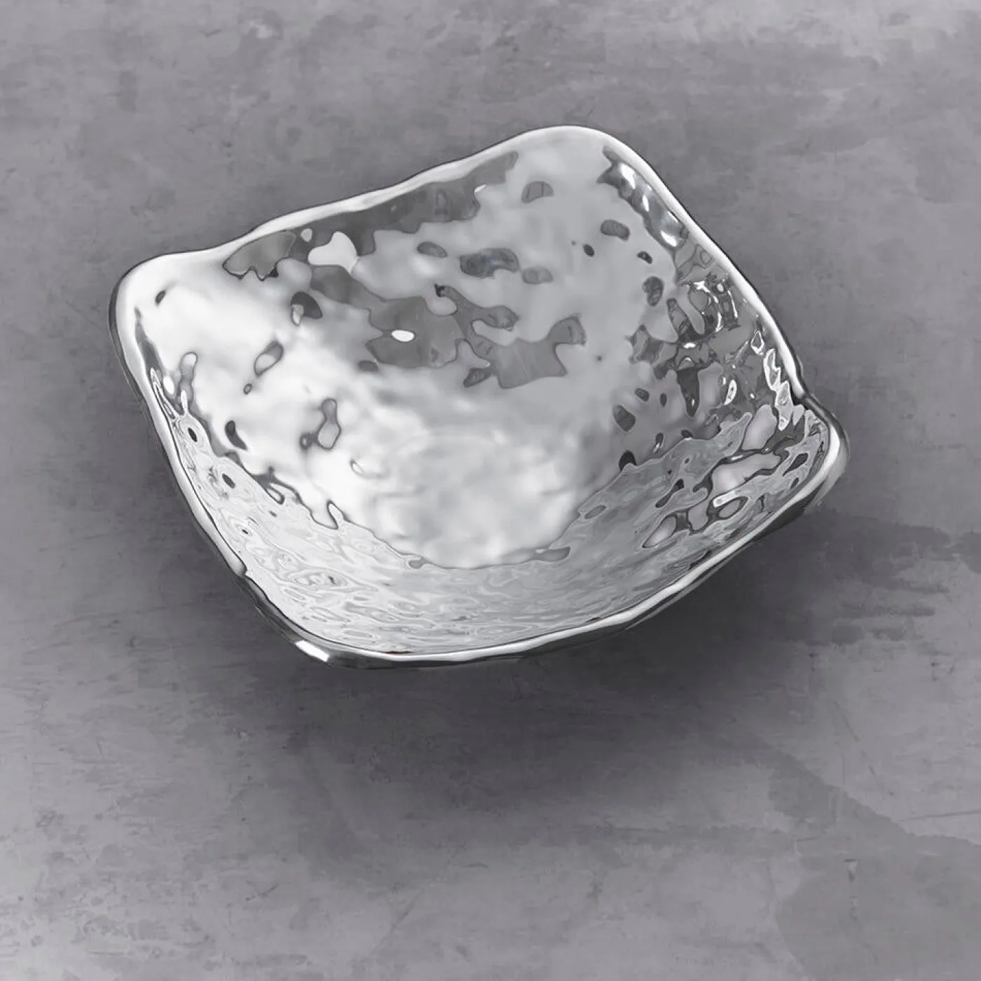 The Beatriz Ball SOHO Jena medium decorative silver bowl features sloping, textured sides that open up to reveal the beauty of the food inside.