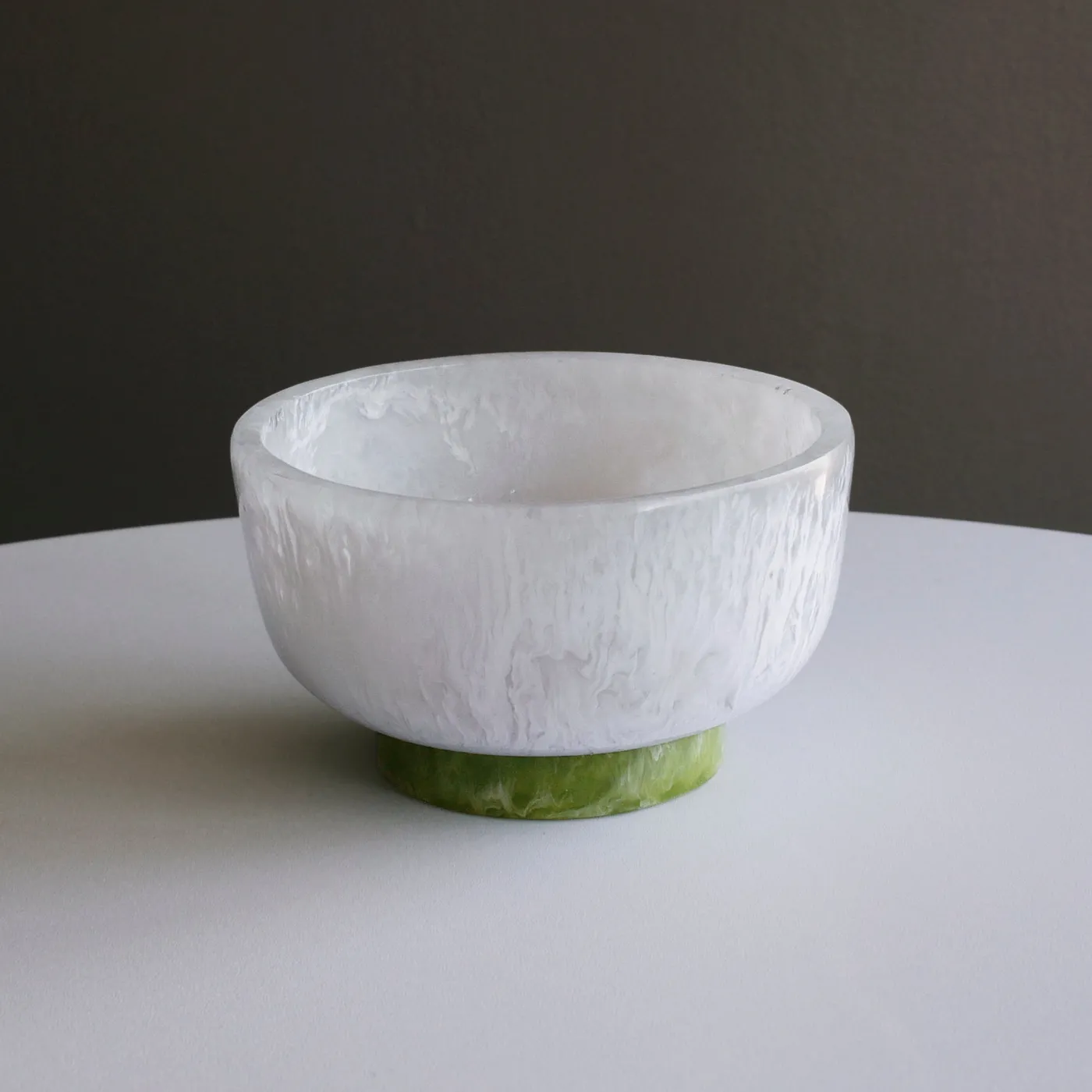 Beatriz Ball introduces large and small round bowls with contrasting bases, plus large oval bowls also with contrasting bases all in colorful translucent resin. The RESIN Rio Small Bowl with Base (White and Green) is perfect for serving or display. Pair with a larger bowl for an awesome set. Makes a great gift.Rounding out the new resin offerings are salad servers with vibrant “bubble” handles, and tines and spoons resembling natural horn. Five color combinations available.