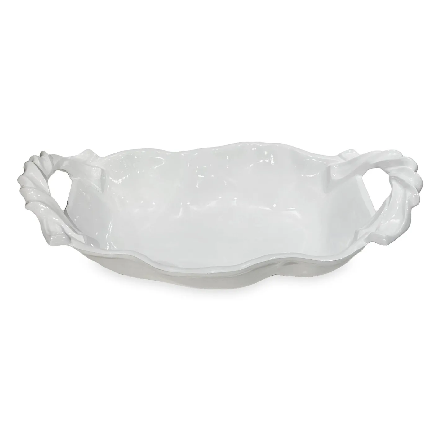 Practical design with a modern edge. The VIDA Sasha Medium Bowl with Handles in white is crafted in durable melamine with clean lines, sculptural curves, and a luminous finish. Easy-to-grip side handles make it perfect for serving salads, pasta, or fruit indoors and outdoors.