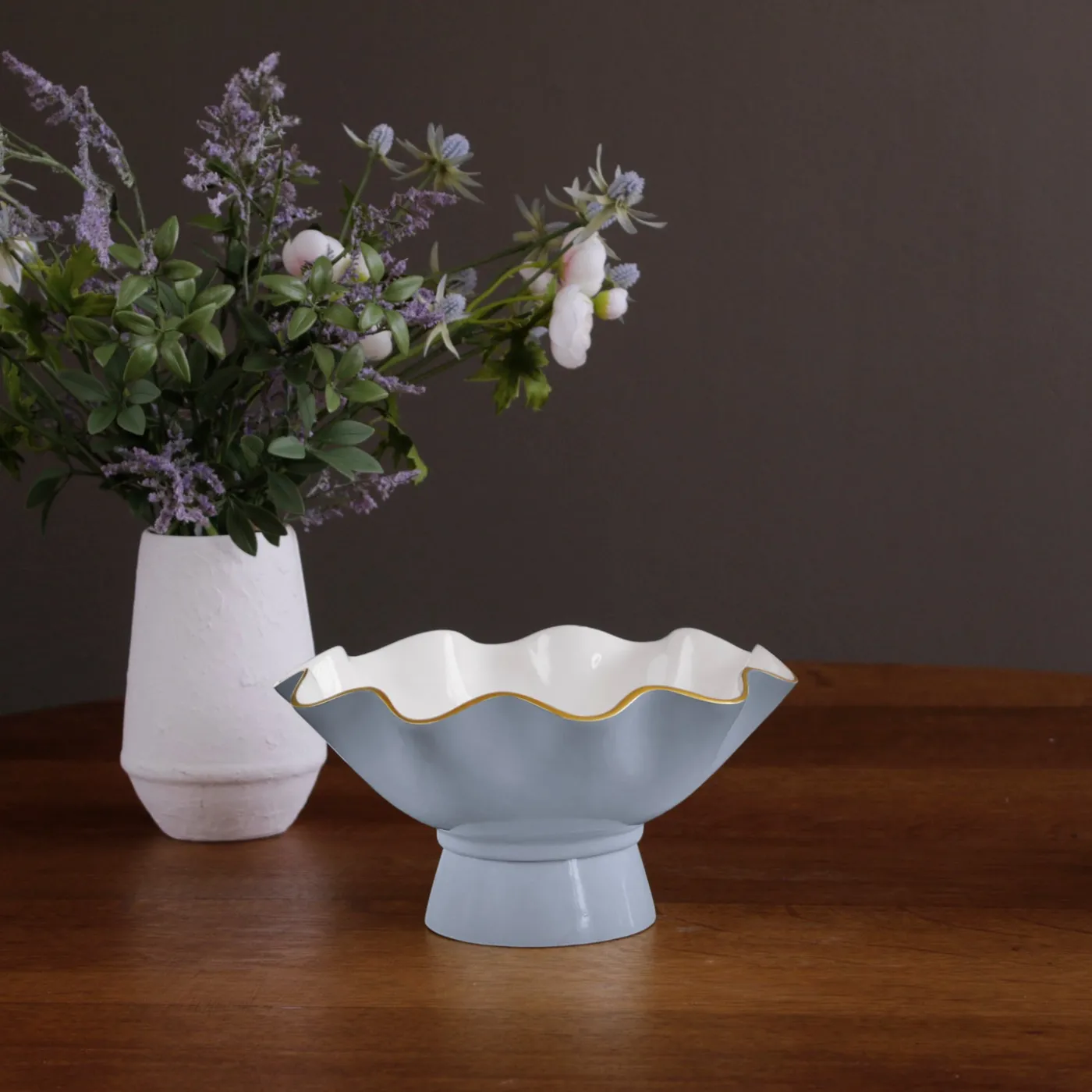 New ENCANTO Carola Small Pedestal (Periwinkle and White) Enameled Color Metal