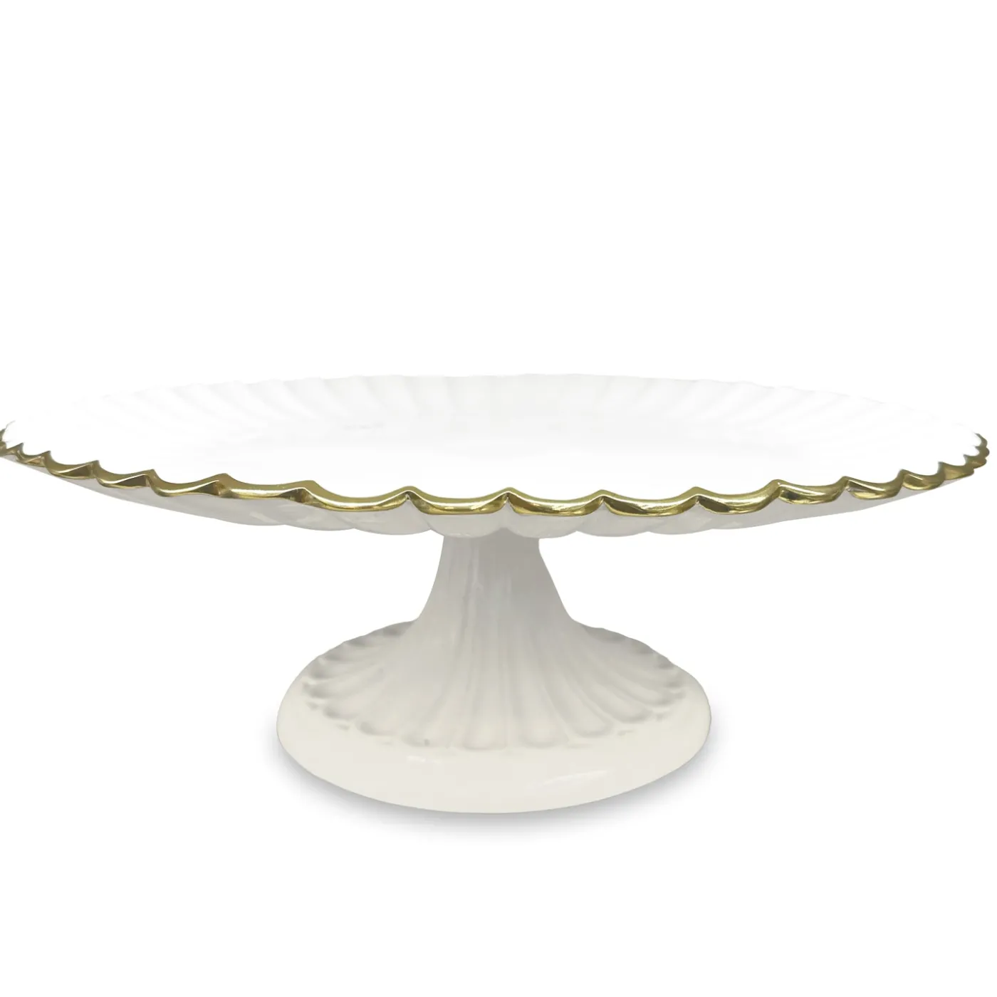 The VINTAGE Vienna Pedestal Cake Plate (Cream and White) elevates any cake or dessert with heirloom style and modern function. Rimmed in gold, its brilliant two-tone finish, fluted surfaces, and elegant proportions bring vintage-inspired luxury to today’s entertaining.