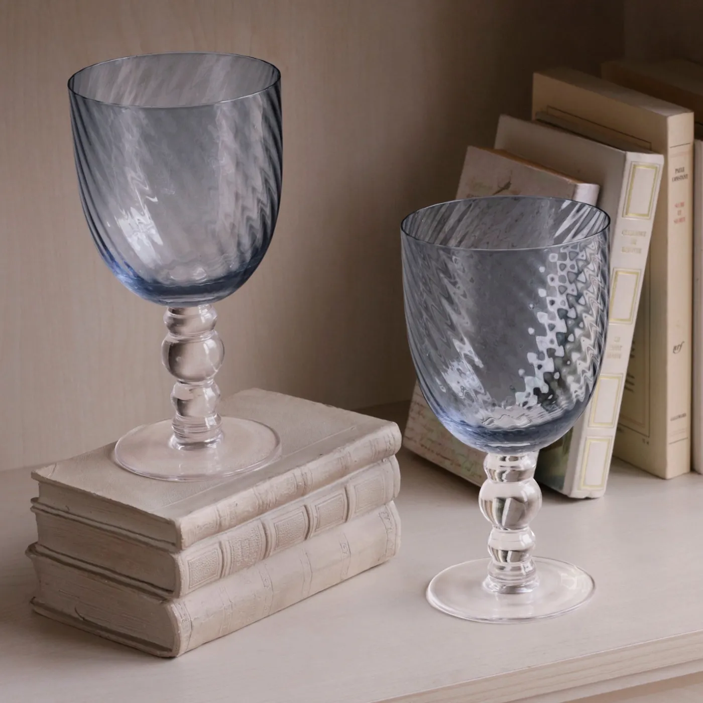 Brilliance in blue! The elegant French Swirl All Purpose Wineglasses in a set of 4 (Blue) pairs timeless design with practical versatility. A swirl optic on the bowl and decorative curves on the stem create a luminous, light-catching effect that delights the eye.