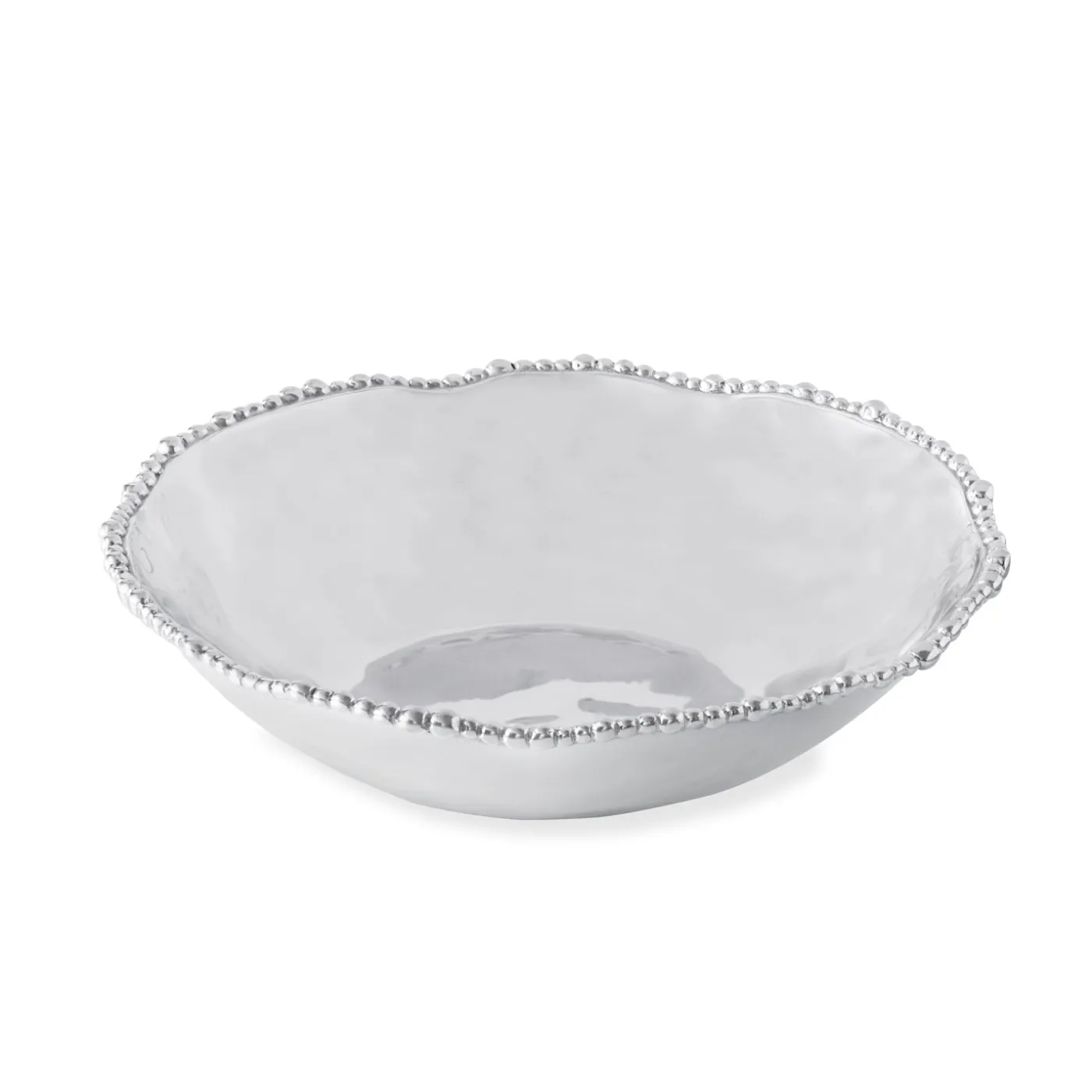 The life of the party! Rimmed in sparkling metallic beads, Beatriz Ball’s ORGANIC PEARL Nova large bowl has a fabulous shape and generous serving area. The large bowl is a must-have for entertaining. Great for fruit, salads, sides, snacks, and more. Makes a unique gift; ideal addition to the bridal registry. Beatriz Ball’s intensely handmade products use eco-friendly and sustainable materials and are crafted by artisans who trace a heritage of metalworking for generations. Made of a top quality, FDA safe, easy-care, oven and freezer friendly aluminum alloy