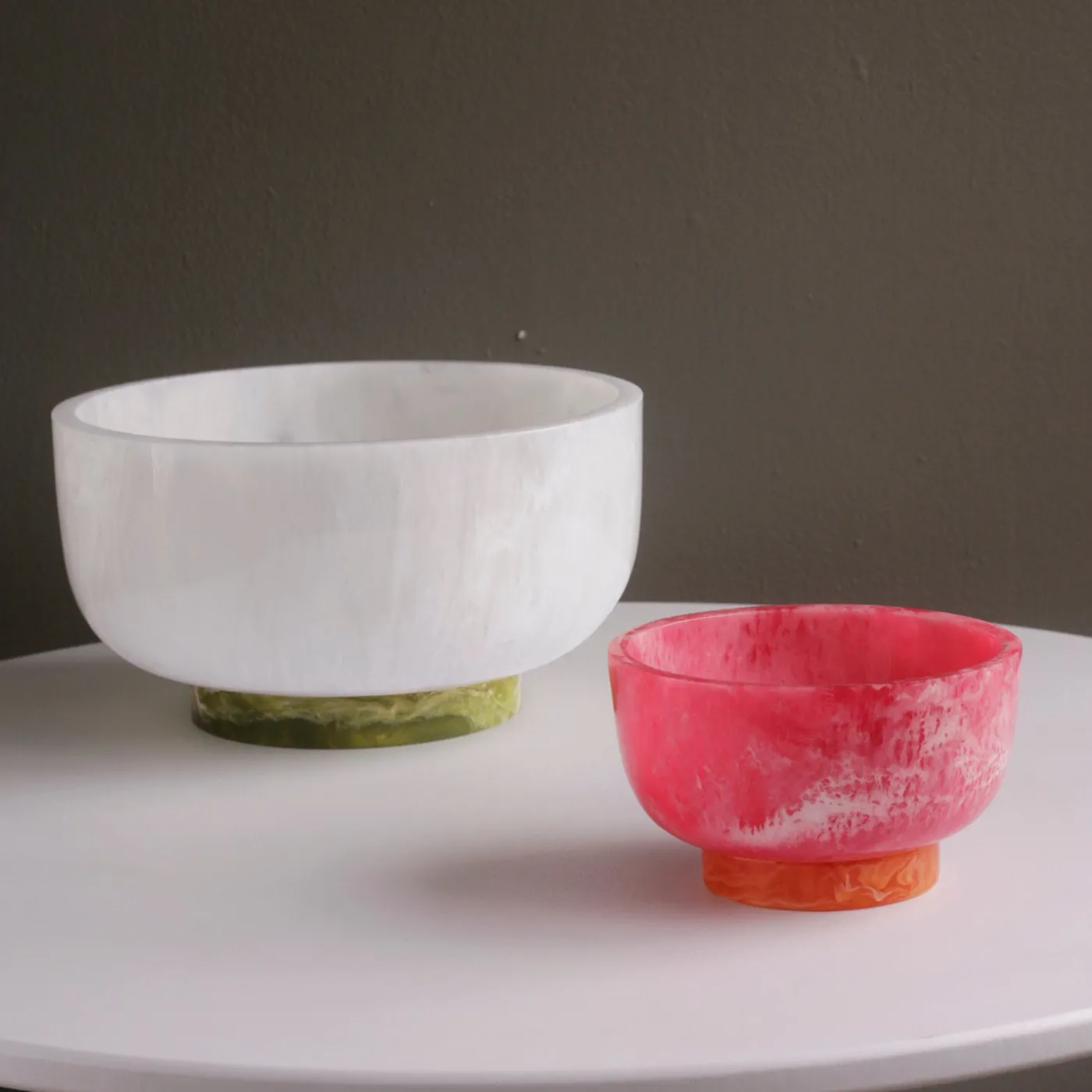 New RESIN Rio Large Bowl with Base (White and Green) Resin|RESIN Rio