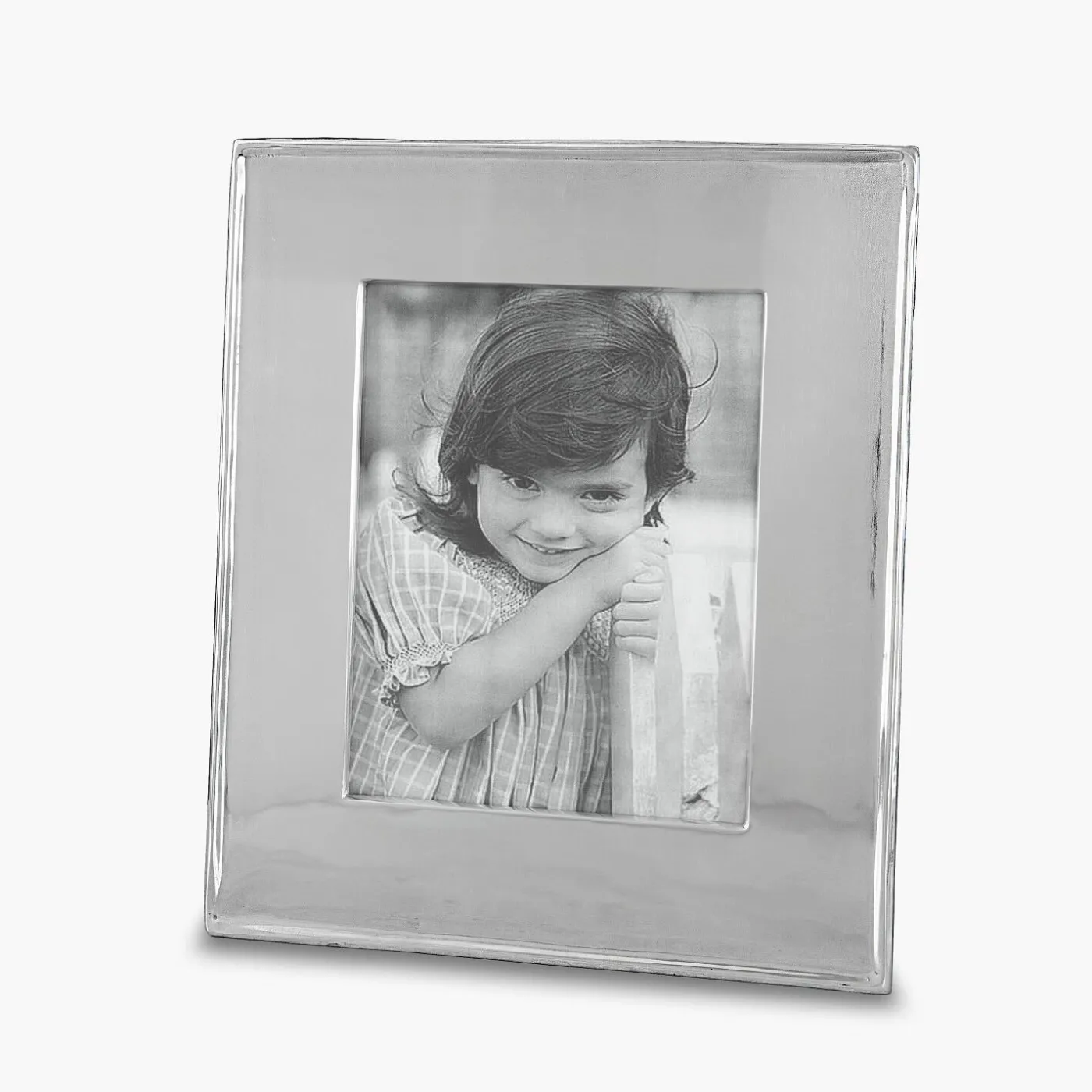 The footed, self-standing frame in a portrait orientation makes a fine wedding gift–or for any special occasion–and is an elegant solution whenever a silver frame is called for.
