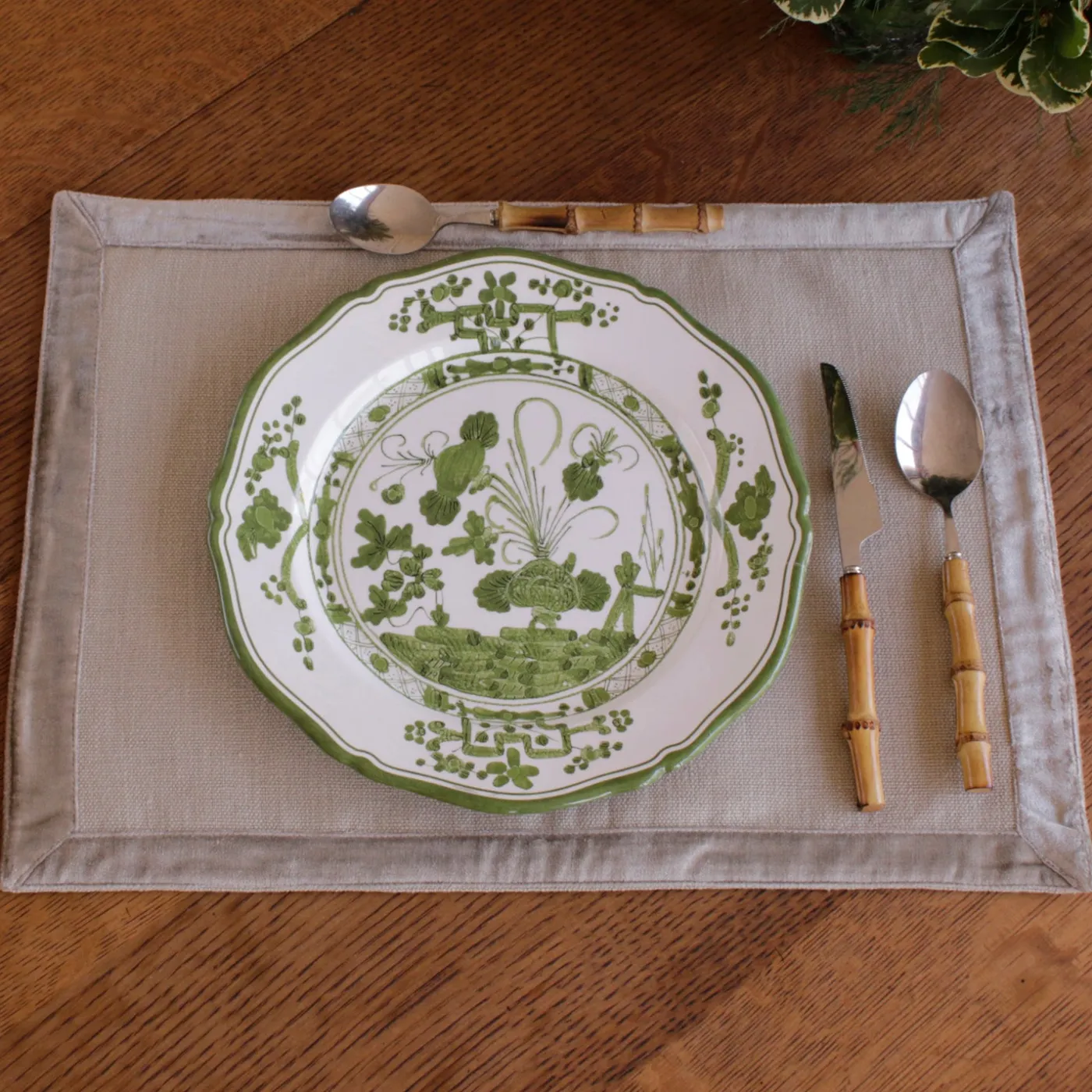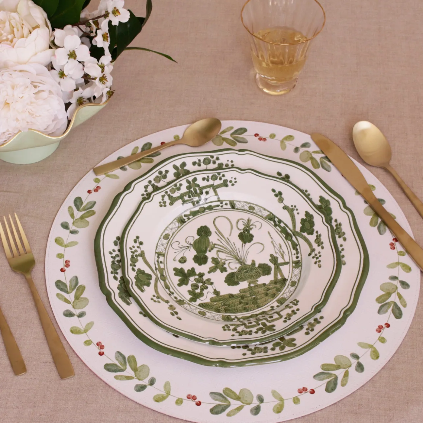 The VIDA Faenza 9″ Salad Plate Set of 4 in white & green is crafted in durable melamine with a luminous finish and vibrant border detail. Ideal for salads, starters, or desserts, these plates bring a pop of color to indoor meals and outdoor entertaining.
