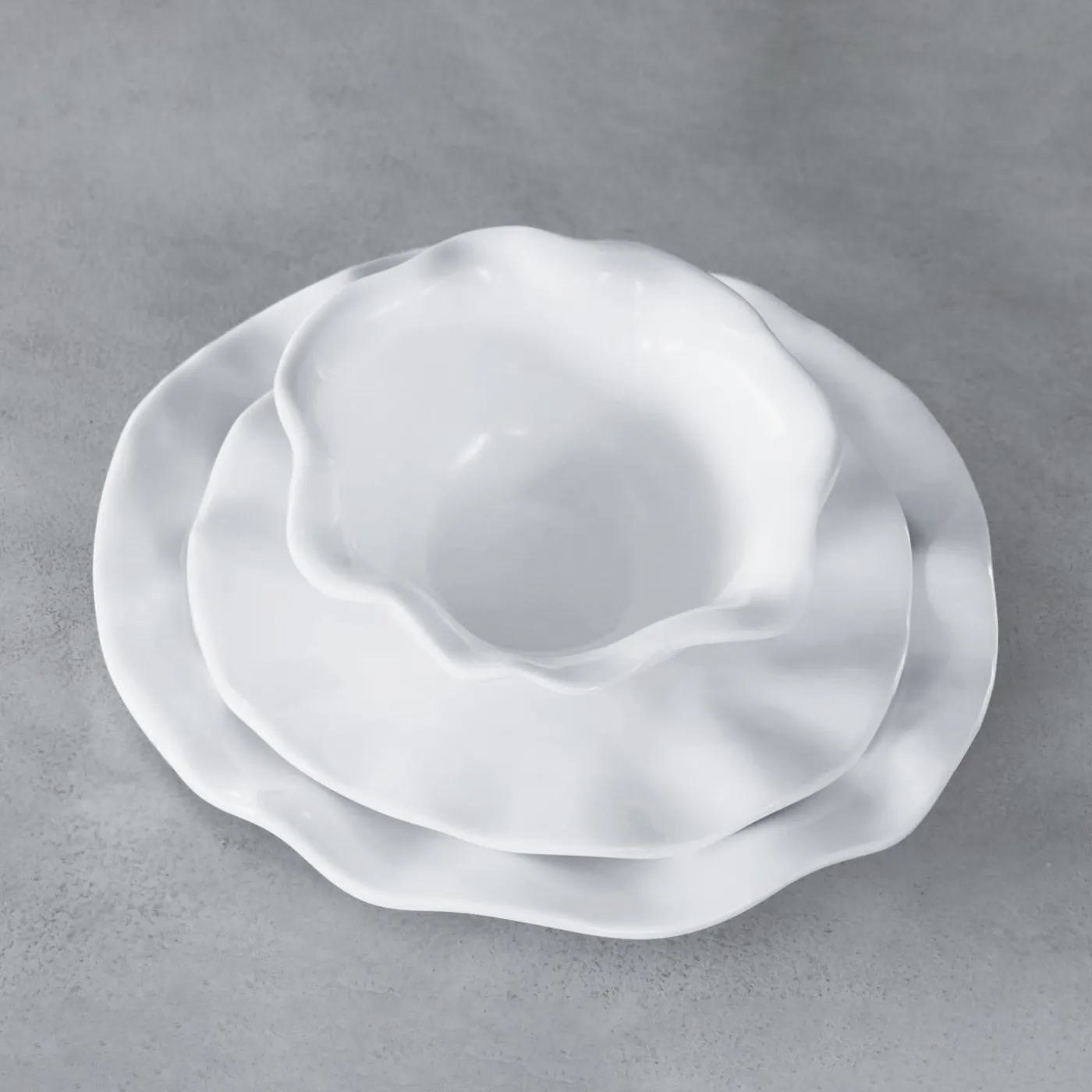 The VIDA Havana 11″ Dinner Plate, an essential item from Beatriz Ball’s VIDA Collection of luxury melamine, is a favorite from our popular Havana Collection. With a perfectly irregular shape and a brilliant white surface, the round salad plate may be paired with other VIDA Havana dining pieces–a 9″ salad plate and a 7″ cereal bowl–for a coordinated serving set. Sold in sets of four.