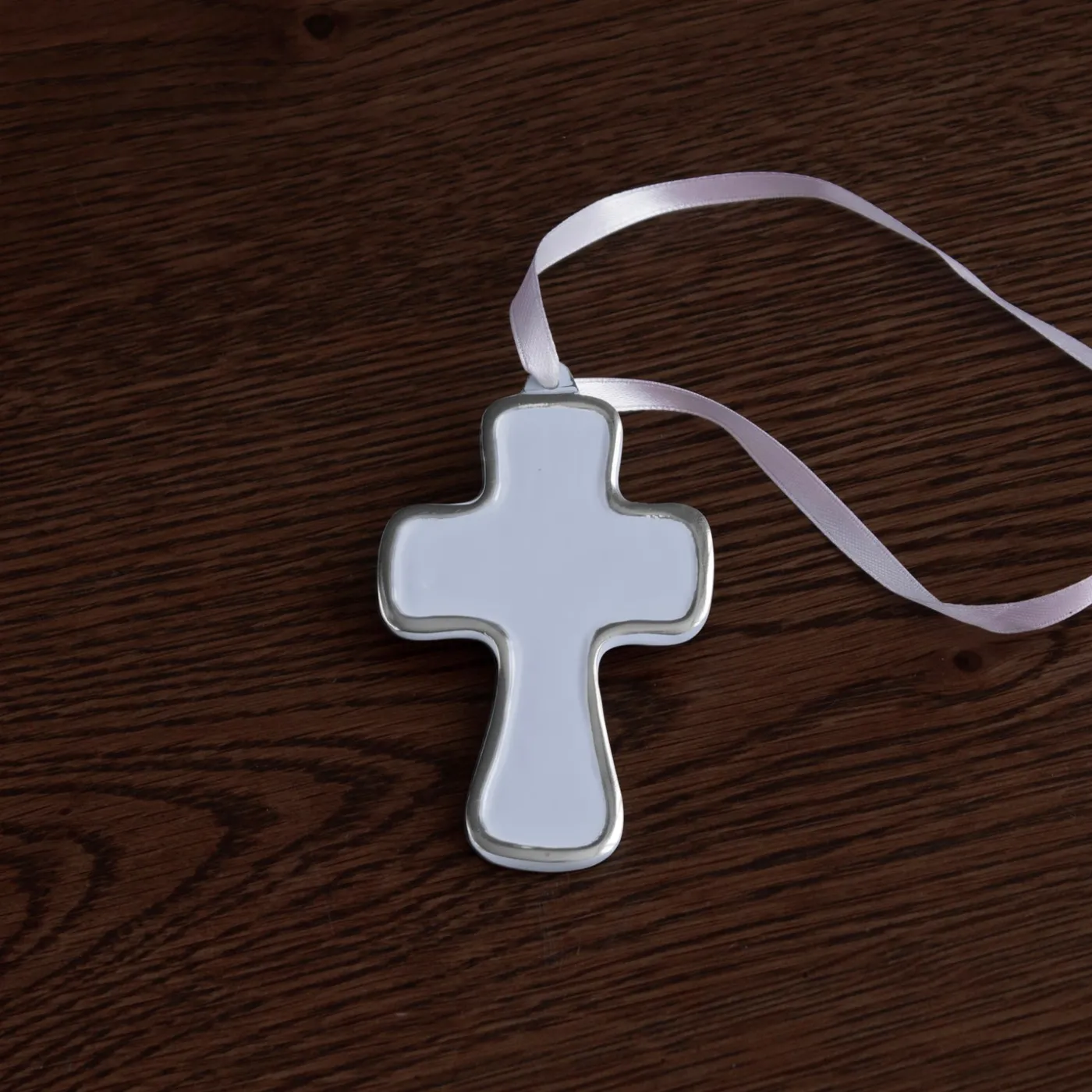 Gifts of faith in delightful colors. Beatriz Ball continues to innovate and add new finishes and techniques to its handmade offerings with the multicolored ENCANTO Collection–incorporating vibrant enameled colors and gold-tone details on bowls, trays, platters, ice buckets and picture frames. Your home will be the canvas, and your paint palette pieces of delightful colors! Of heirloom quality, this lovely cross ornament may be hung from the branches of a Christmas tree, suspended from a length of ribbon, or placed flat on a table as a decorative accent. This handsome enameled metal cross makes a heartfelt gift for Christmas or Easter, weddings, christenings, first communions, and other special occasions, and will be cherished for years to come. Notable for its reverent and simple shape, and brilliant periwinkle finish rimmed in silver, the ENCANTO Athens Cross Ornament (Periwinkle) is a beautiful expression of faith. Satin ribbon included. Beatriz Ball’s intensely handmade products use eco-friendly and sustainable materials and are crafted by artisans who trace a heritage of metalworking for generations. Made of a top quality, easy-care, aluminum alloy with an enamel finish. This item is for decorative purposes only.