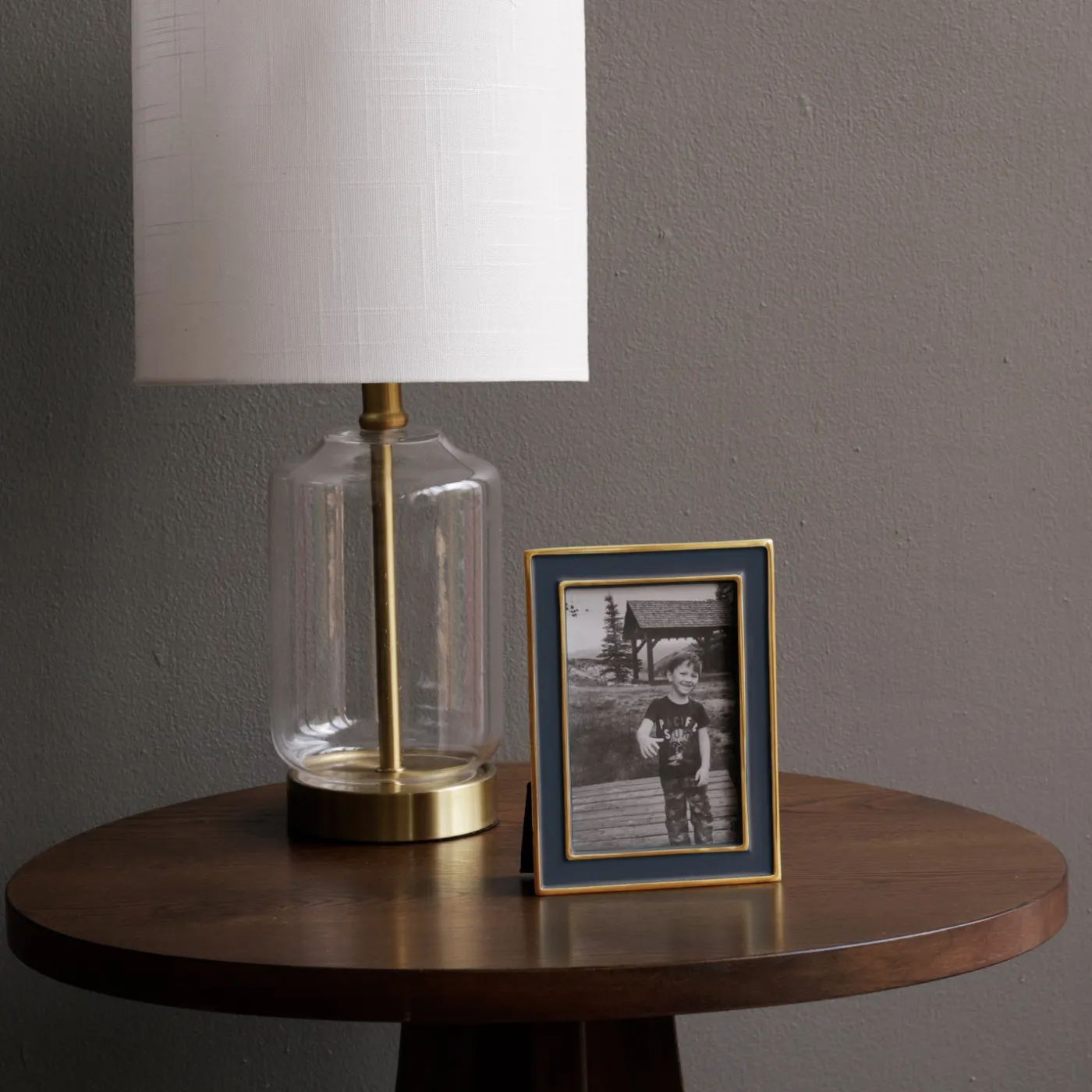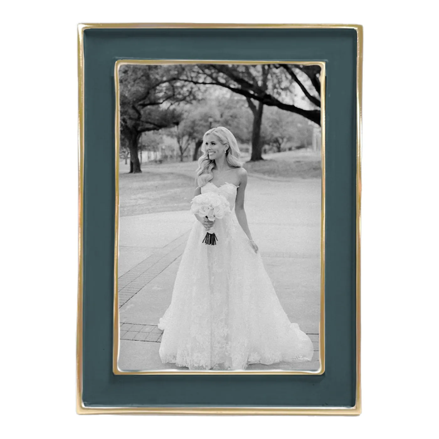 Impeccable design in Midnight. The Encanto Jason 4×6 Frame (Midnight) strikes a sophisticated note with its slim rectangular profile, luminous enamel finish rimmed in gold, and elegant proportions. The Midnight shade—a deep, rich blue—adds striking depth to any room.