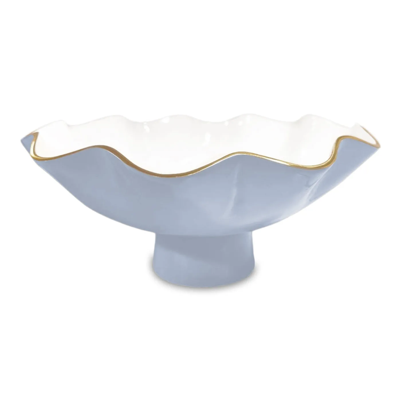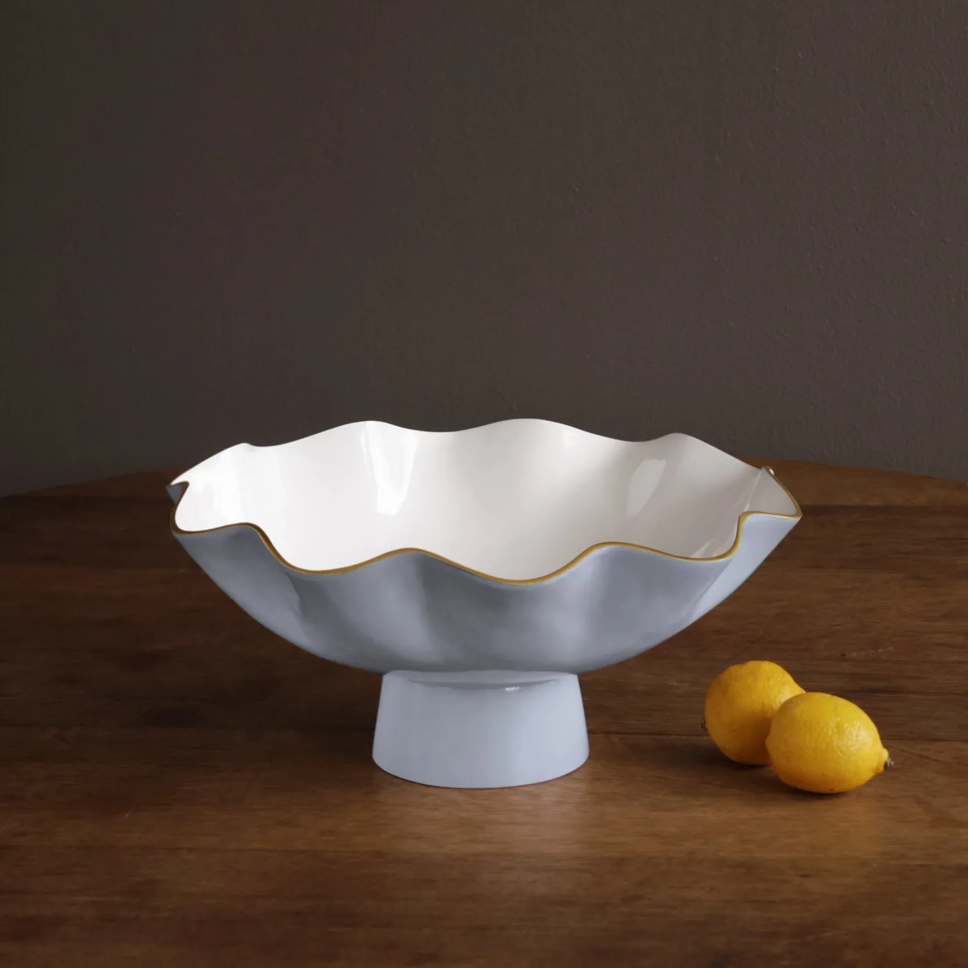 Next level design. Notable for its gently curving sides, elegant rise, and brilliant two-tone finish rimmed in gold, the ENCANTO Carola Large Pedestal (Periwinkle and White) is a fabulous design that is as practical as it is decorative. Ideal for fruit, salads, snacks and sides, combine with other ENCANTO Carola pieces for an elevated serving set. The ENCANTO Collection pieces are all about classic shapes, re-invented in lively colors. Fashionably tailored in delightful colors, ENCANTO items are fabulous gift items for brides, and perfect for anyone who loves to entertain and decorate. On trend, their beautiful designs with curving forms add grace and sophistication to any setting. Makes an awesome centerpiece! Beatriz Ball’s intensely handmade products use eco-friendly and sustainable materials and are crafted by artisans who trace a heritage of metalworking for generations. Made of a top quality, easy-care, aluminum alloy with a food safe enamel finish. Dishwasher safe.