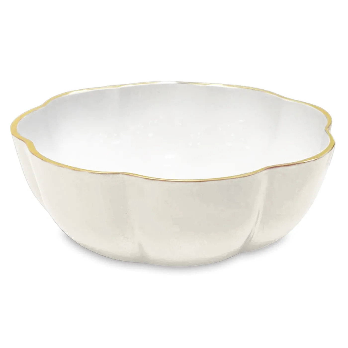 Outsized potential. Beatriz Ball continues to innovate and add new finishes and techniques to its handmade offerings with the multicolored ENCANTO Collection–incorporating vibrant enameled colors and gold-tone details on bowls, trays, platters, ice buckets and picture frames. Your home will be the canvas, and your paint palette pieces of delightful colors! Of heirloom quality, this small but versatile bowl makes a perfect gift for anyone. Notable for its scalloped shape, and brilliant two-toned enameled finish, rimmed in gold, the ENCANTO Devon Mini Bowl (Cream and White) is a beautiful example of timeless design. Great for snacks and dips, it is also handy on the desk or vanity, or use to hold earrings and other small jewelry on your bedside table. Beatriz Ball’s intensely handmade products use eco-friendly and sustainable materials and are crafted by artisans who trace a heritage of metalworking for generations. Made of a top quality, easy-care, aluminum alloy with a food-safe enamel finish. Dishwasher safe.