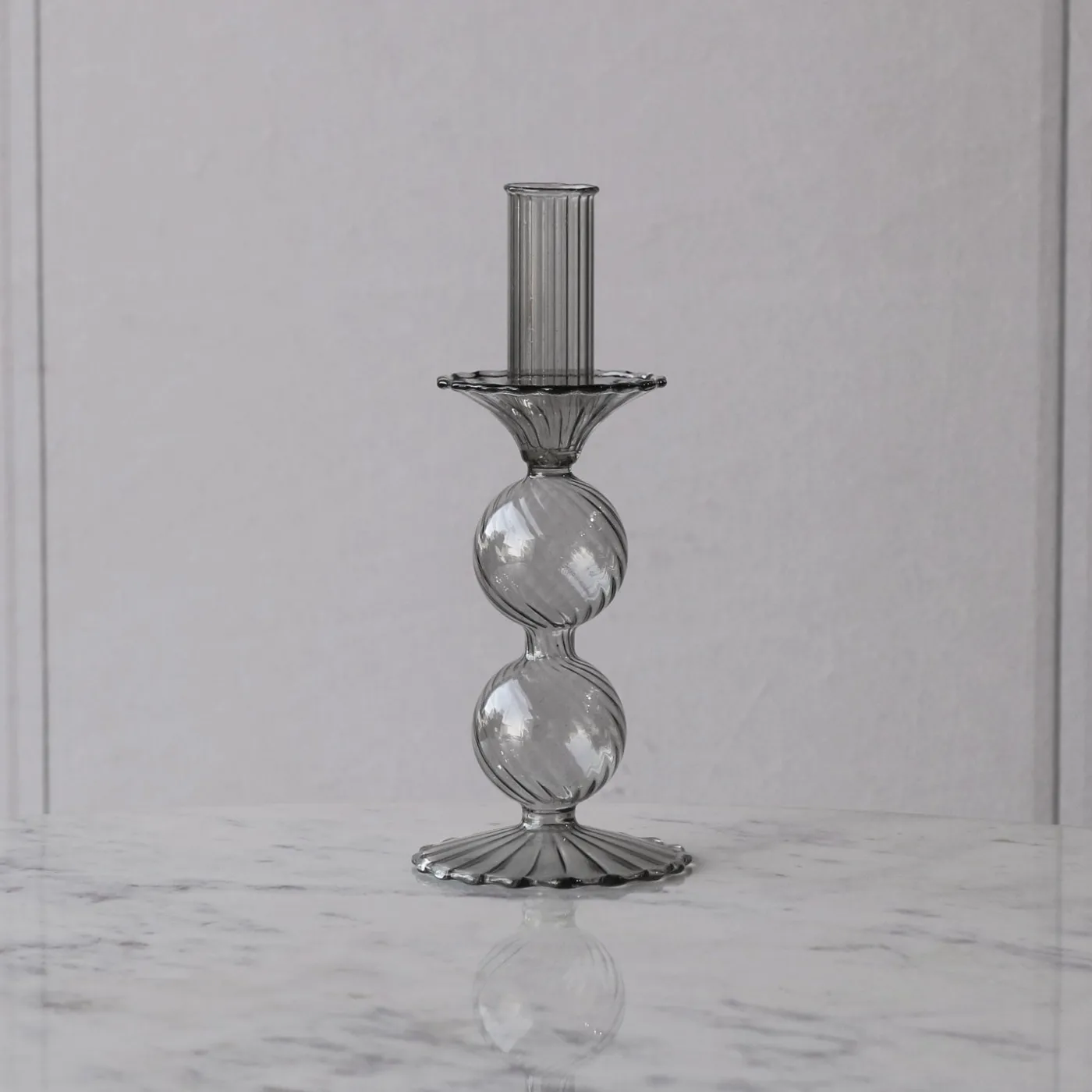 A magic touch. Beatriz Ball celebrates the art of glassmaking with the luxurious but affordable GLASS Cambridge Collection. Every inch the classic, the GLASS Cambridge Lucille 2 Ball Candlestick Holder Set of 2 (Light Gray) has a lighter-than-air delicacy, and a gem-like brilliance and clarity. Guaranteed to add a touch of design magic to any room, the candlestick holders can be topped with tapers in fun colors, and mixed and matched with other Cambridge designs of various hues and sizes. A beautiful addition to your home, the candlestick holders are sold as a set of two. Made exclusively for Beatriz Ball. Handwash.