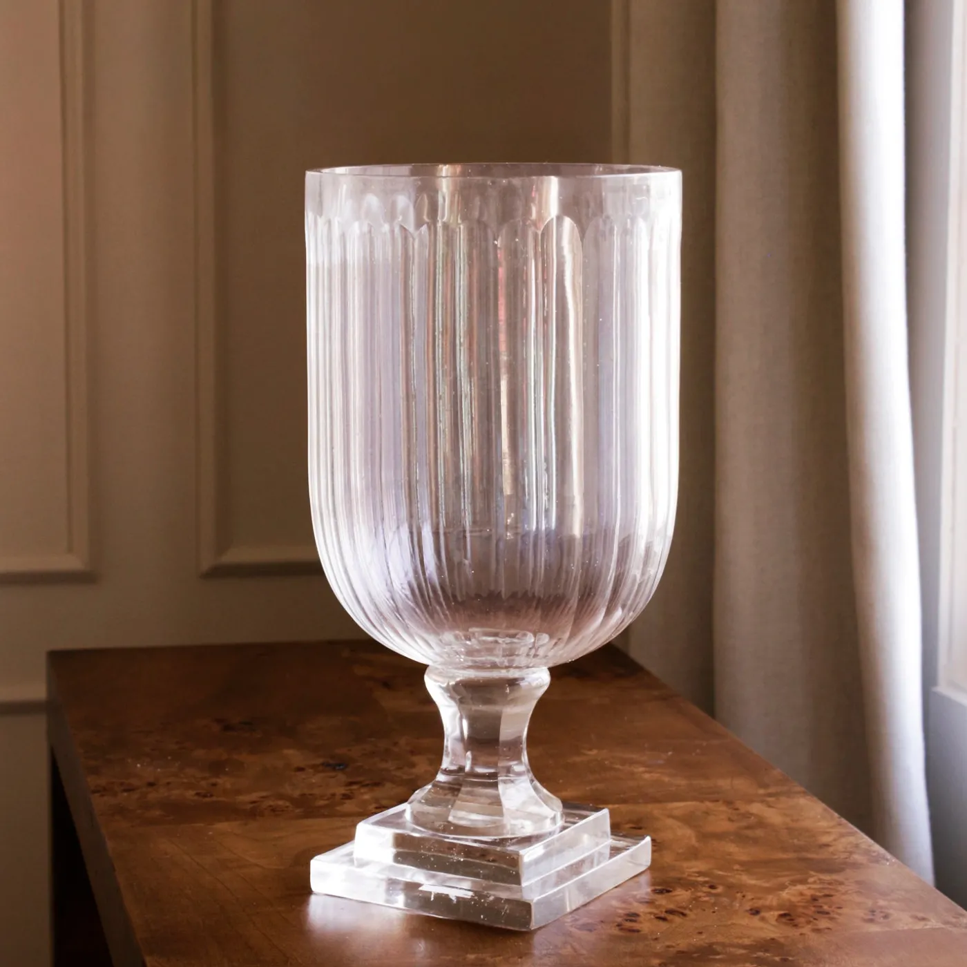 Pure simplicity with radiant appeal. The GLASS Eclat Large Hurricane in clear is hand-blown, showcasing elegant curves and timeless transparency. Stunning with a candle or floral arrangement, it adds effortless sophistication to any table, mantel, or console.