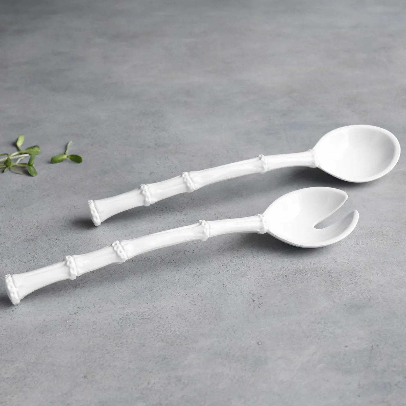 Brilliant faux bamboo styling presented in luxury melamine. With naturalistic bamboo inspired handles, these dazzling white salad servers are a great addition to any bowl. A natural when paired with Beatriz Ball’s VIDA bowls. A great gift for the foodie in your life. Dishwasher safe (top rack), heavy weight, food safe, BPA and PABA free.