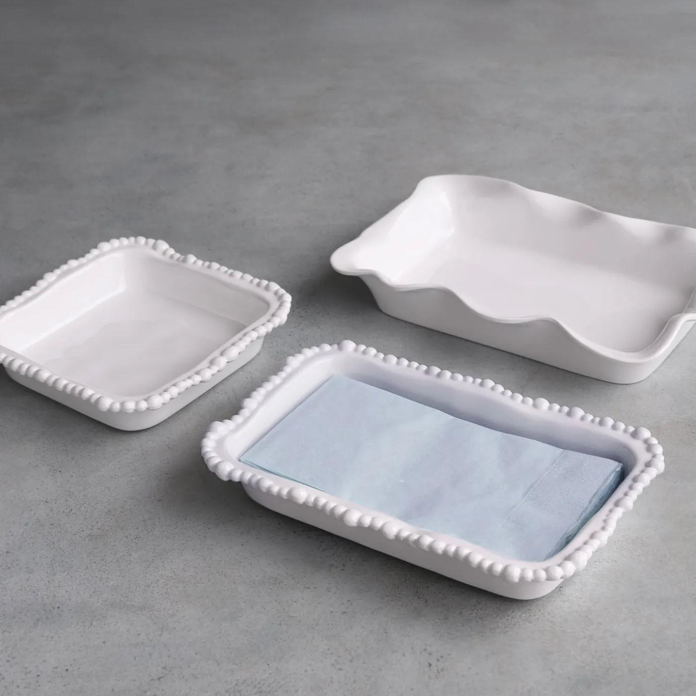 A lively and classy look for presenting guest towels.The VIDA Alegria Guest Towel Holder (White) is an essential serving piece from Beatriz Ball’s VIDA Collection of luxury melamine. With a pearl inspired rim and a brilliant white surface, the design looks great anywhere. Perfect for a variety of serving needs, the item has the luster, heft and look of a ceramic piece. Holds standard guest towels. Made of luxury melamine for everyday enjoyment, this piece is ideally suited for indoor and outdoor use. Dishwasher safe (top rack), heavy weight, food safe, BPA and PABA free.