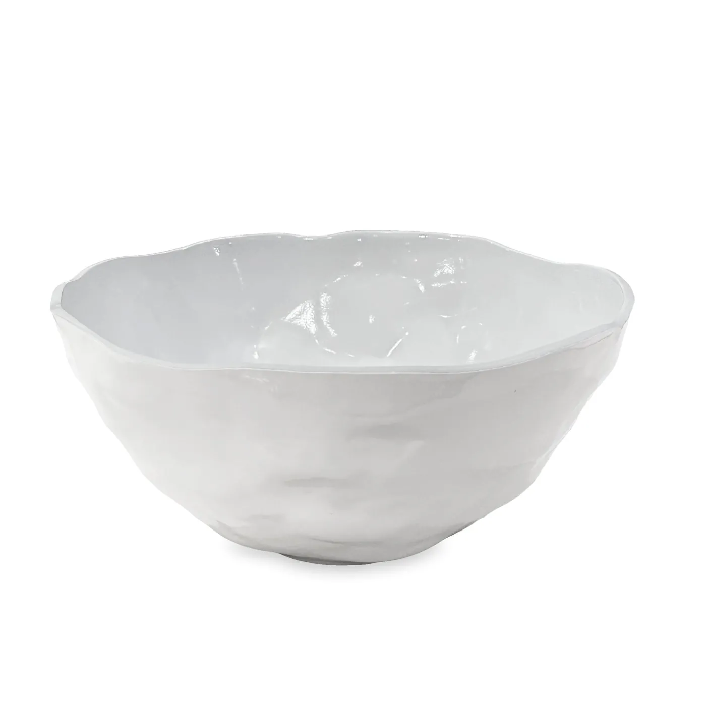 The VIDA Nube Large Deep Round Bowl in white is crafted in durable melamine with fluid curves and a luminous finish. Its ample size makes it perfect for serving leafy salads, pasta, or fresh fruit at gatherings indoors or outdoors.