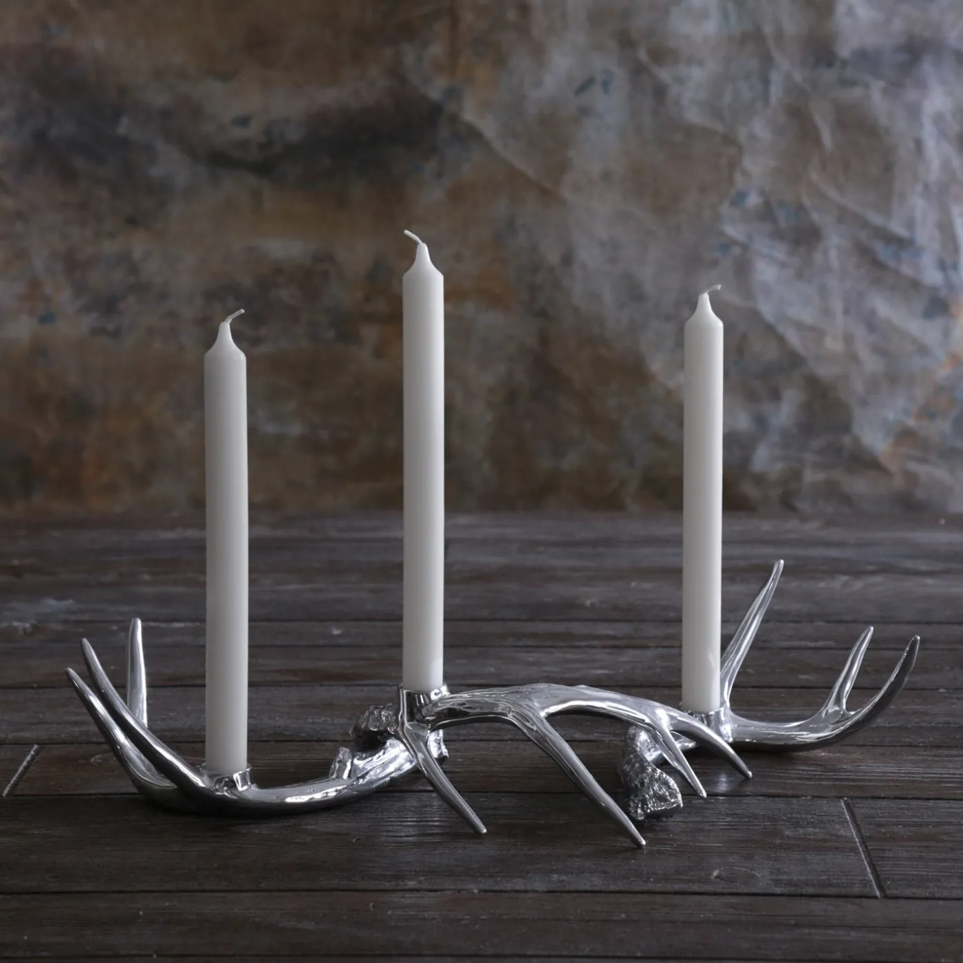 Fresh and luxurious, WESTERN Antler Candlestick Set of 3 takes the line to a brand new dimension of elegance and richness. Candles not included.